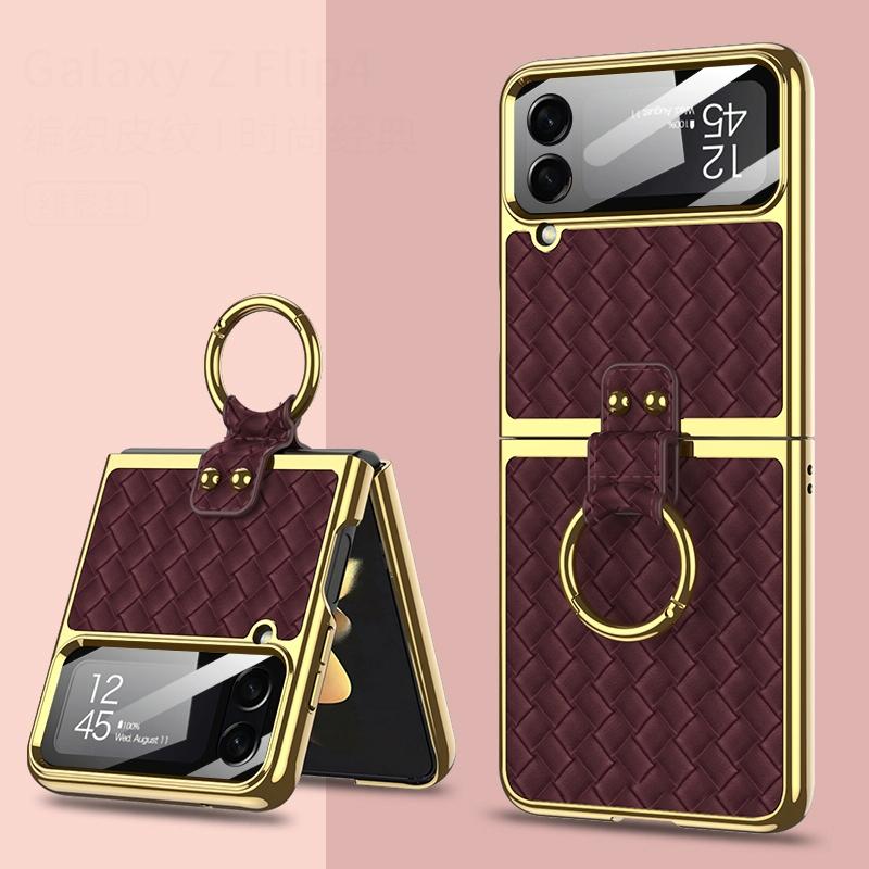 For Samsung Galaxy Z Flip4 GKK Weave Texture Electroplating Protective Phone Case(Brown) (GKK)