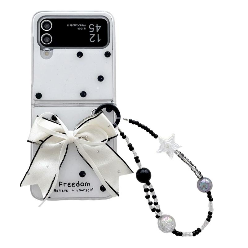 3. Bracelet-style Strap: Includes a stylish black and white beaded strap adorned with star and crystal ball accents, both fashionable and functional for added grip.