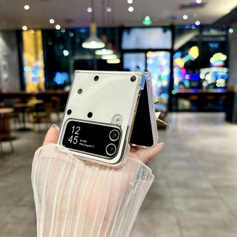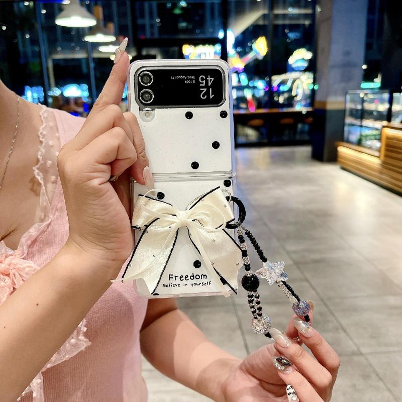 For Samsung Galaxy Z Flip4 Glitter Powder Dots Pattern Phone Case with Bow Bracelet(White)