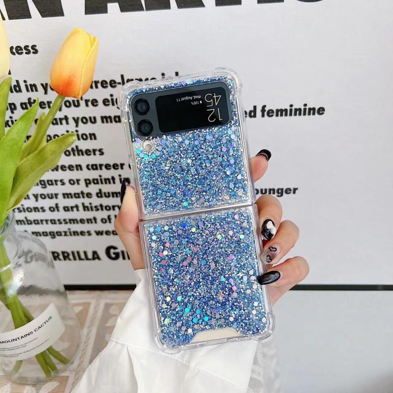 For Samsung Galaxy Z Flip4 Glitter Sequins Epoxy TPU Phone Case(Blue)