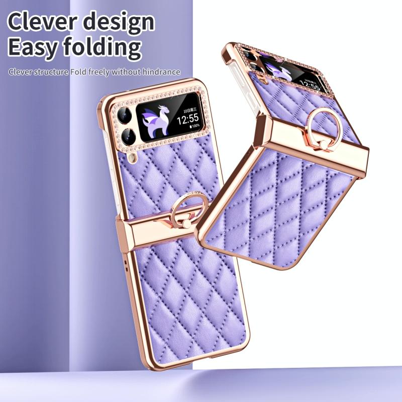 For Samsung Galaxy Z Flip4 Grid Leather Pattern Electroplating Frame Folding Phone Case(Purple)
