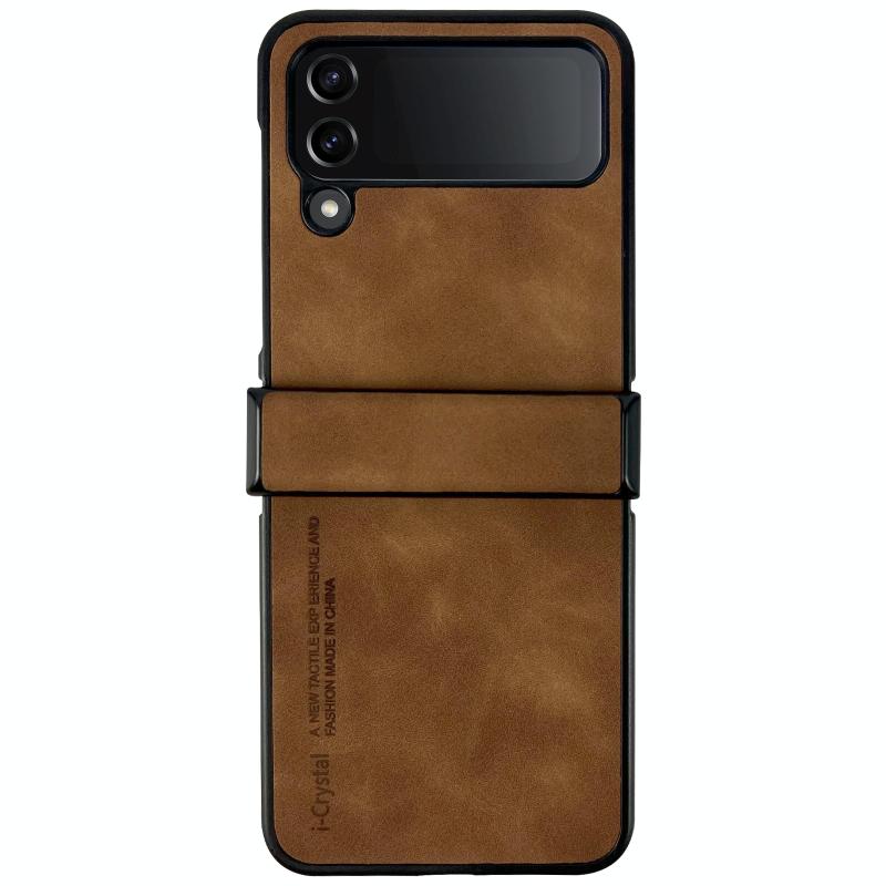 For Samsung Galaxy Z Flip4 i.Crystal Lambskin Three-piece Folding Phone Case(Brown)