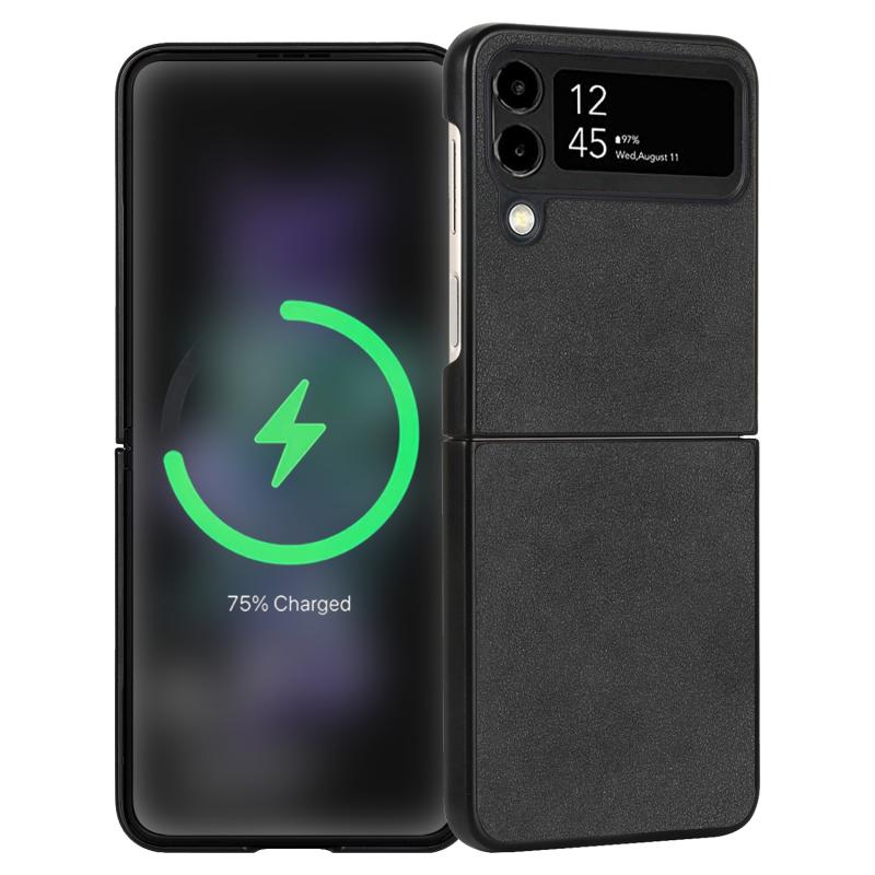 For Samsung Galaxy Z Flip4 Lambskin Texture Leather Folded Phone Case(Black)