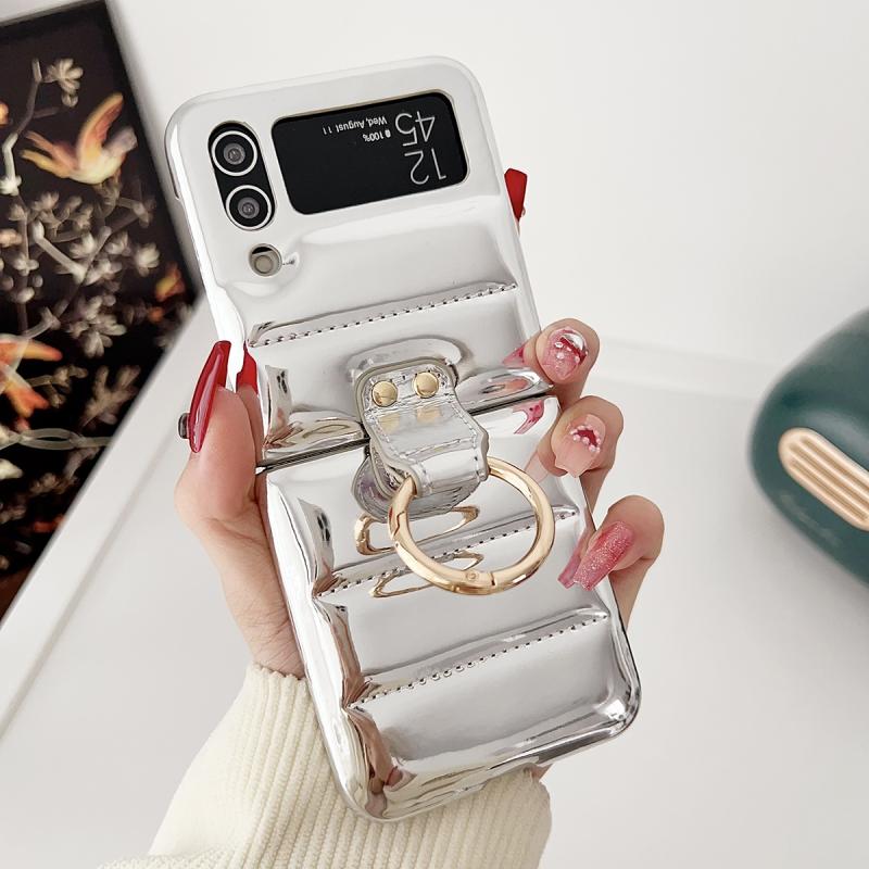 For Samsung Galaxy Z flip4 Laser Aurora Ring Down Jacket Shockproof Phone Case(White)