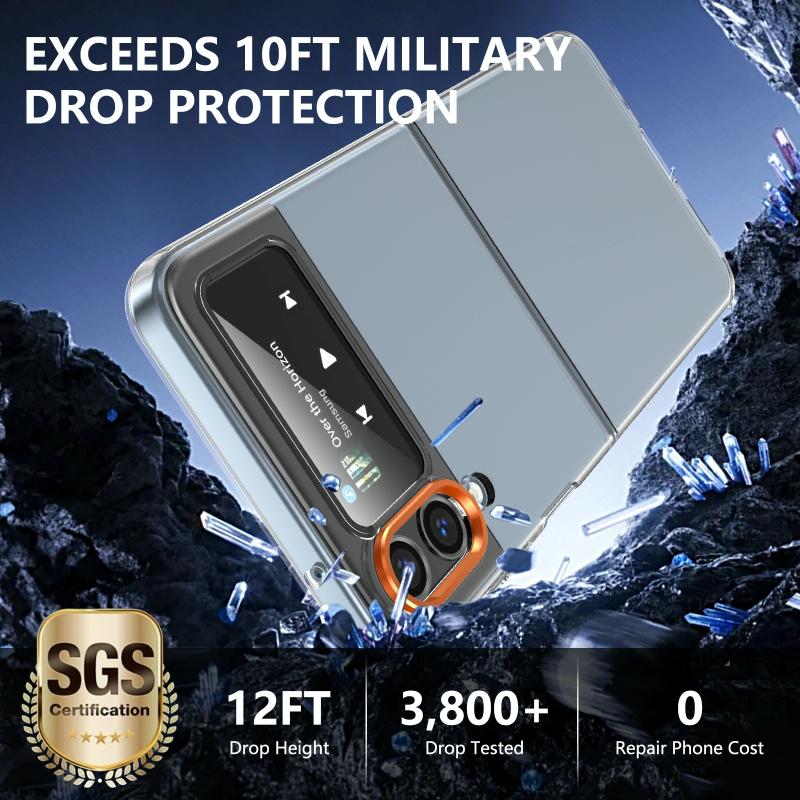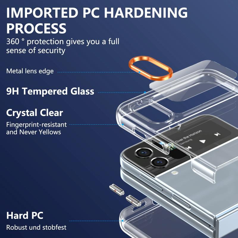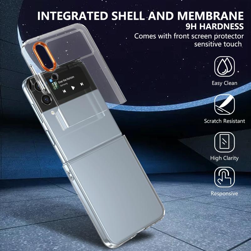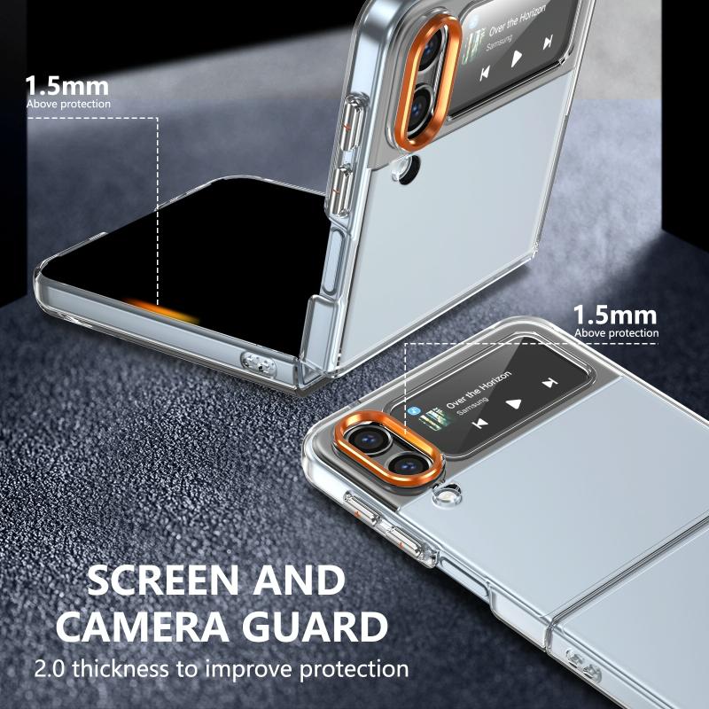 For Samsung Galaxy Z Flip4 lce Folding Series Integrated Clear PC Phone Case(Orange)