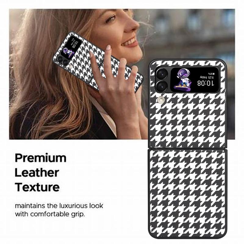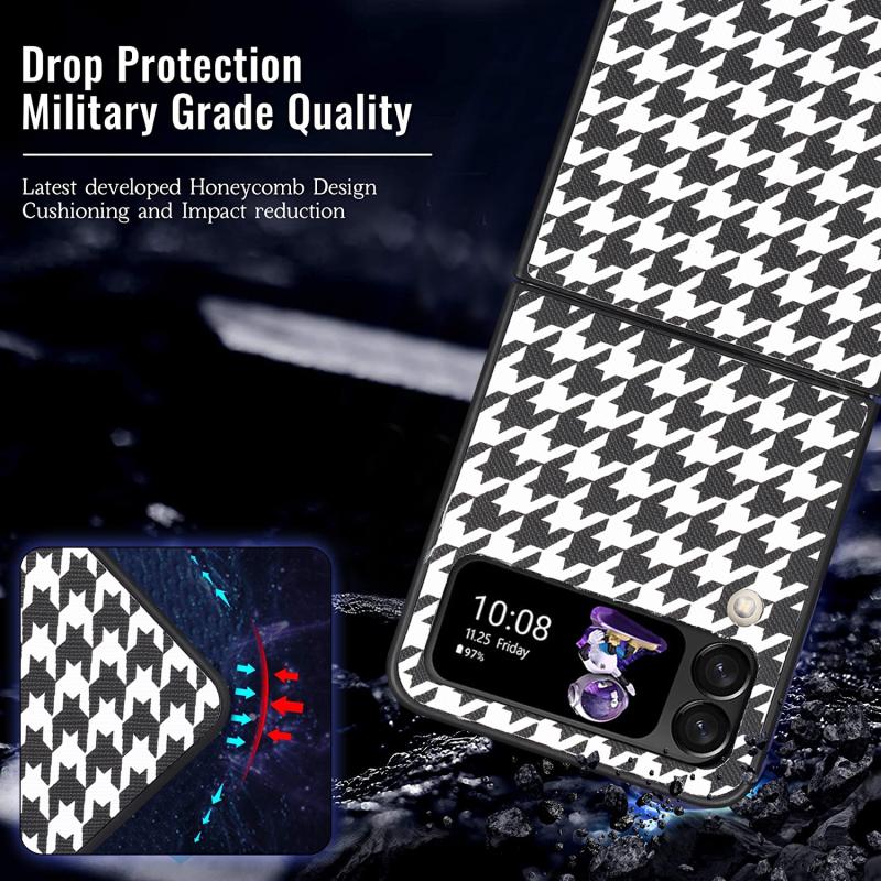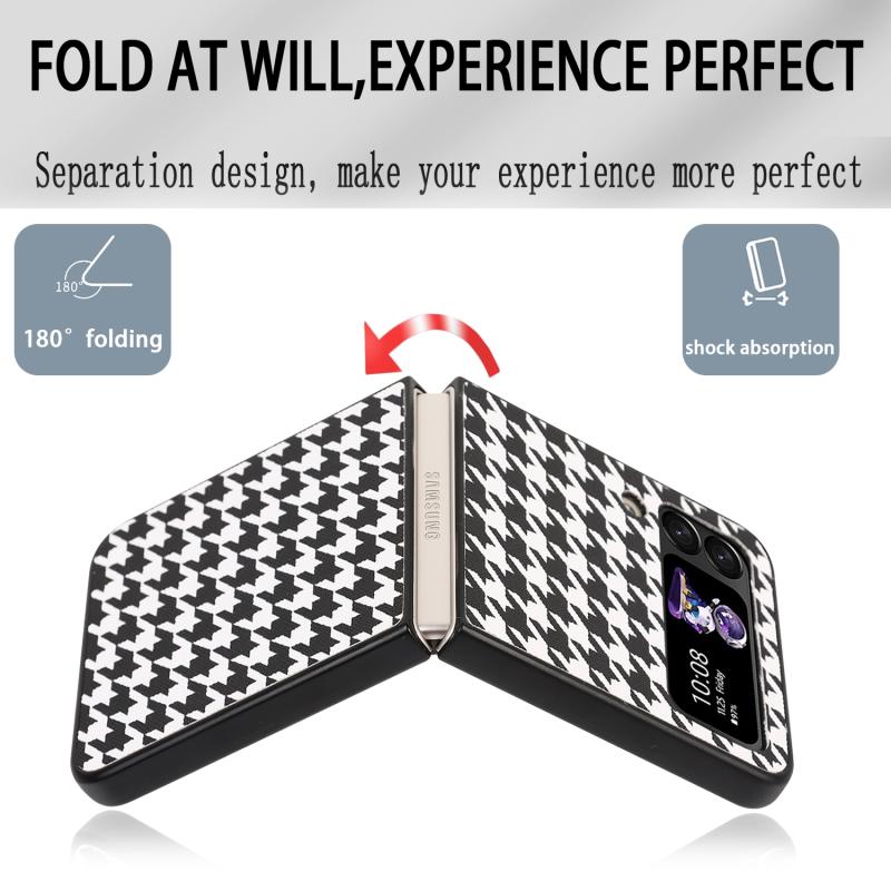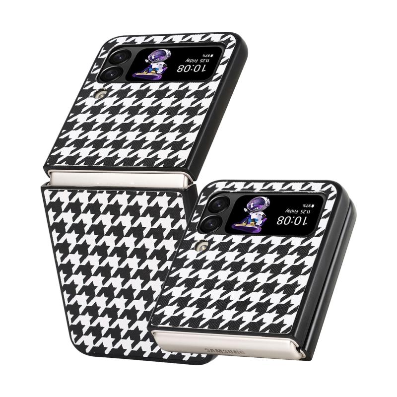 For Samsung Galaxy Z Flip4 Leather Shockproof Protective Phone Case(Black White Star Texture)