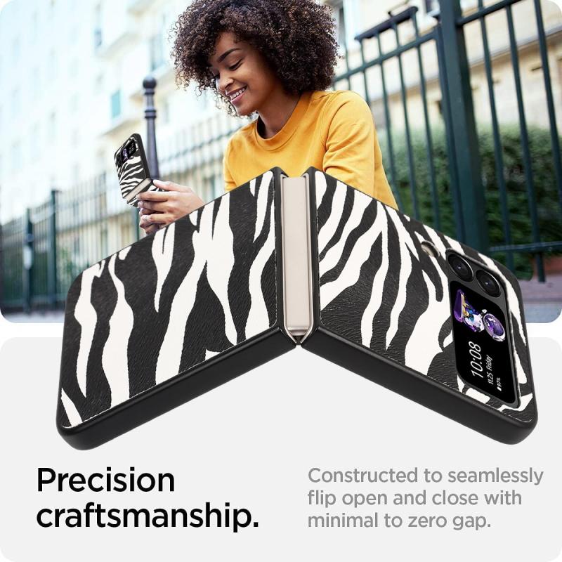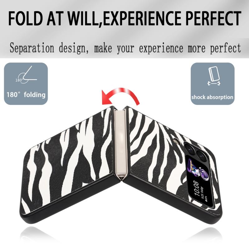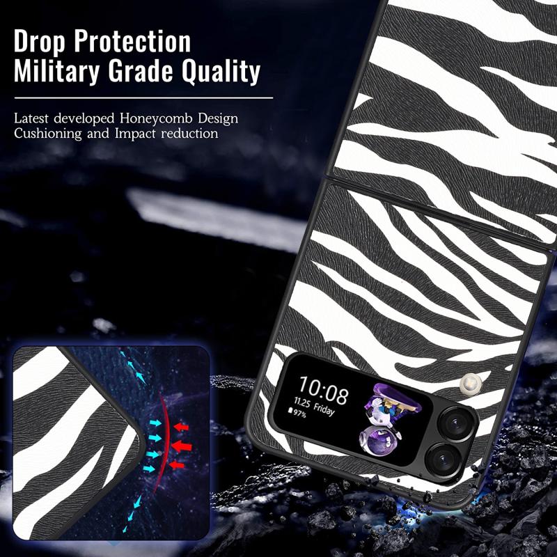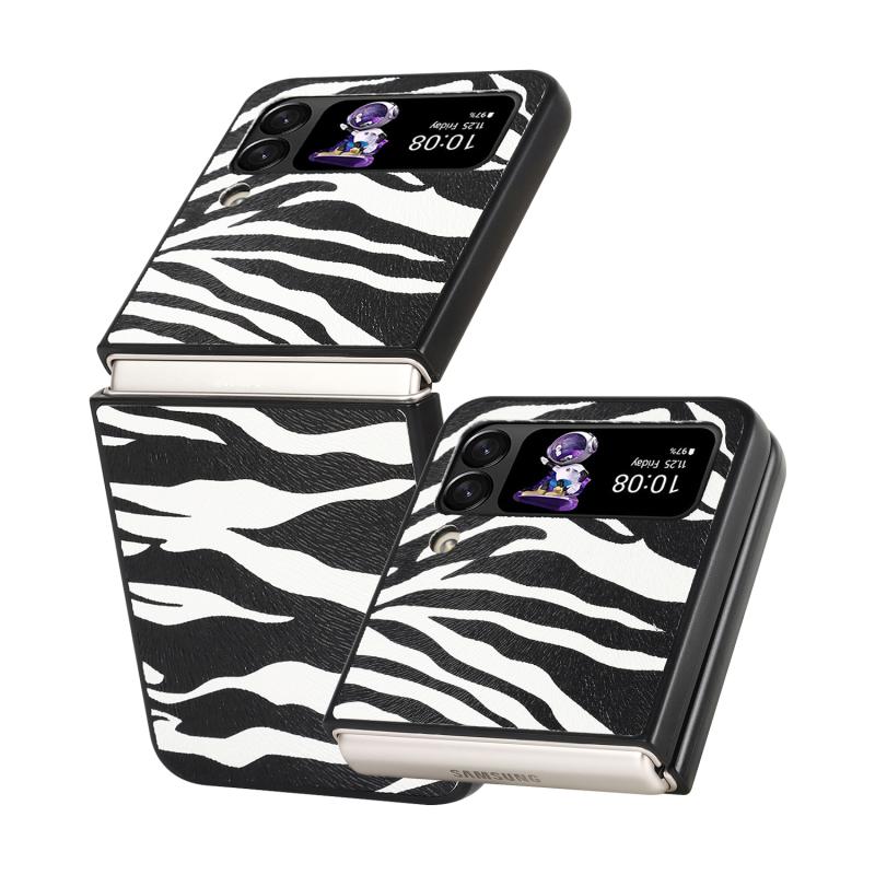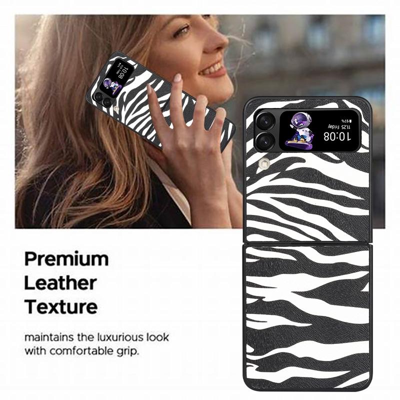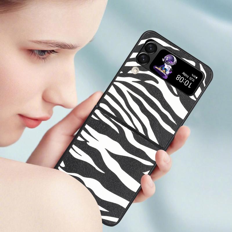 For Samsung Galaxy Z Flip4 Leather Shockproof Protective Phone Case(Black White Strip Texture)