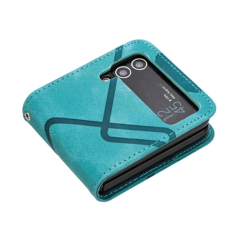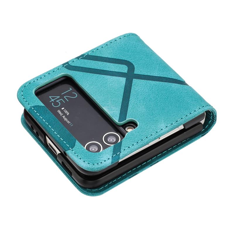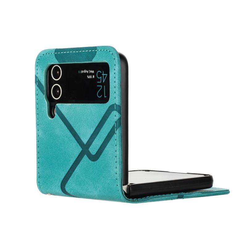 For Samsung Galaxy Z Flip4 Line Pattern Skin Feel Leather Phone Case(Light Blue)