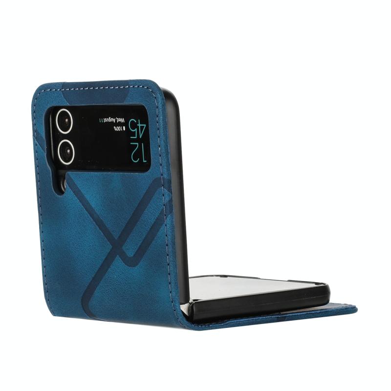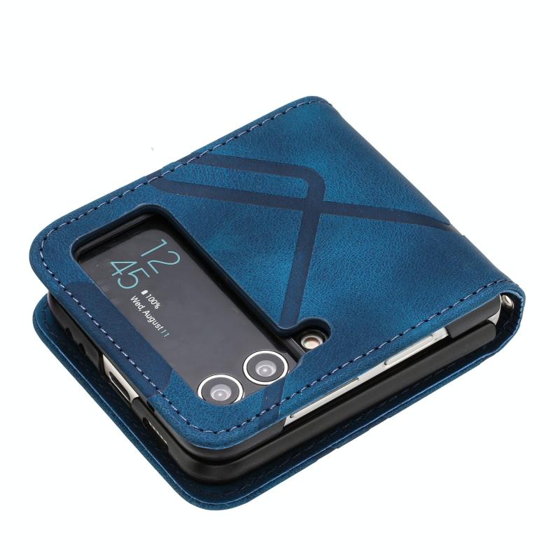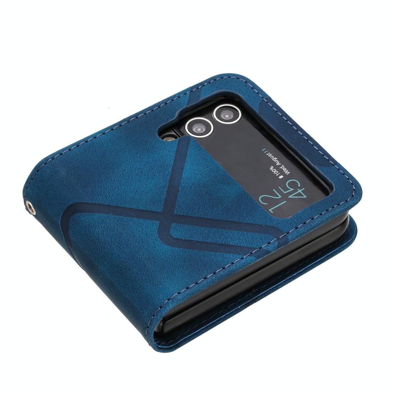 For Samsung Galaxy Z Flip4 Line Pattern Skin Feel Leather Phone Case(Royal Blue)