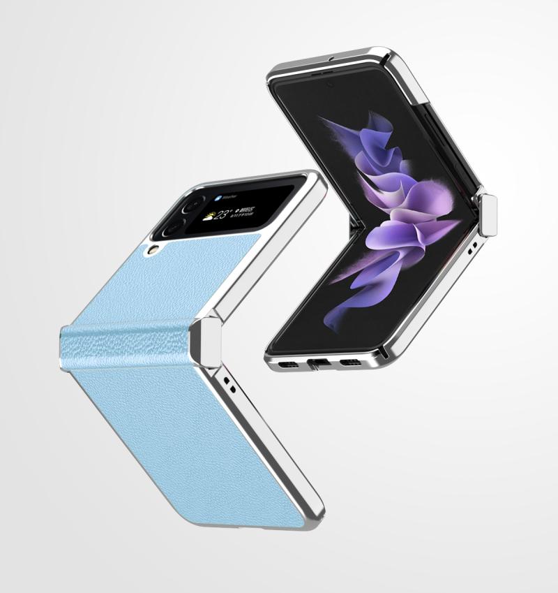 For Samsung Galaxy Z Flip4 Litchi Texture Leather Metal Frame Hinge Phone Case(Blue)