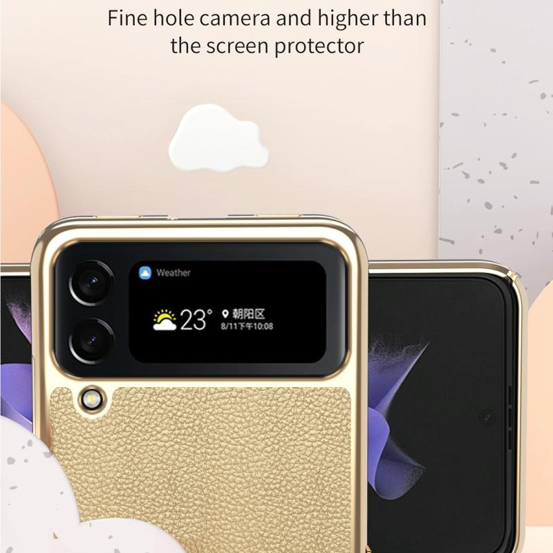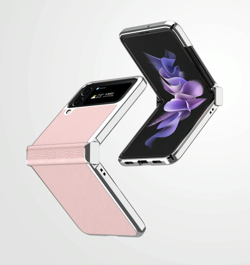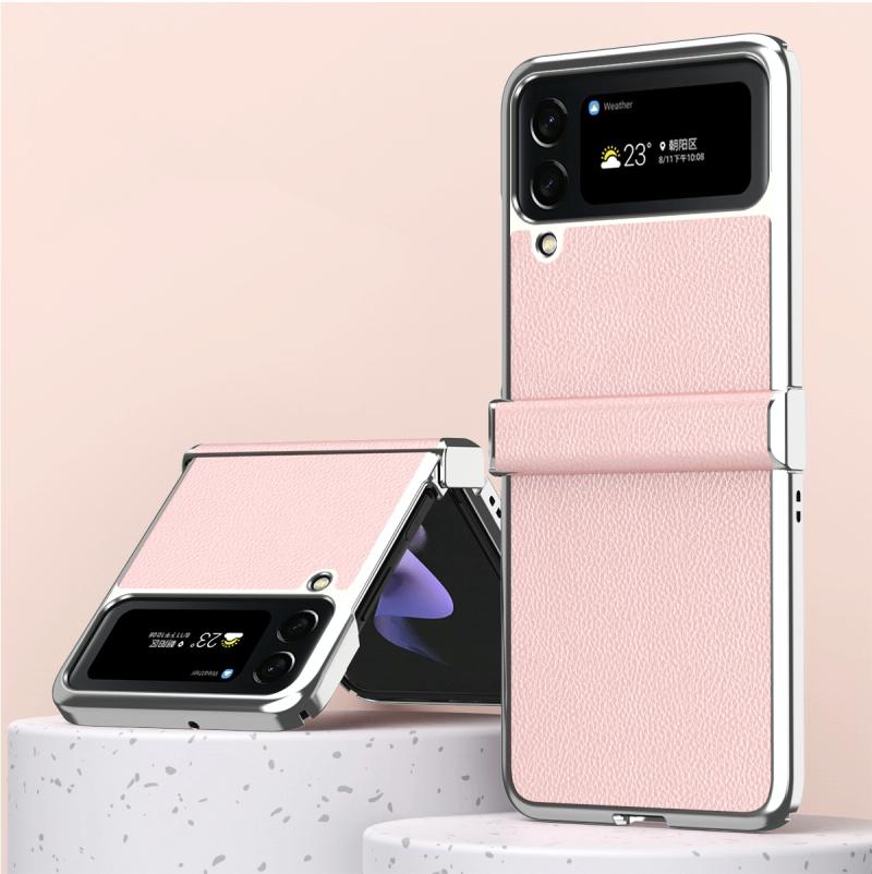 For Samsung Galaxy Z Flip4 Litchi Texture Leather Metal Frame Hinge Phone Case(Pink)