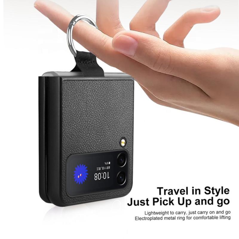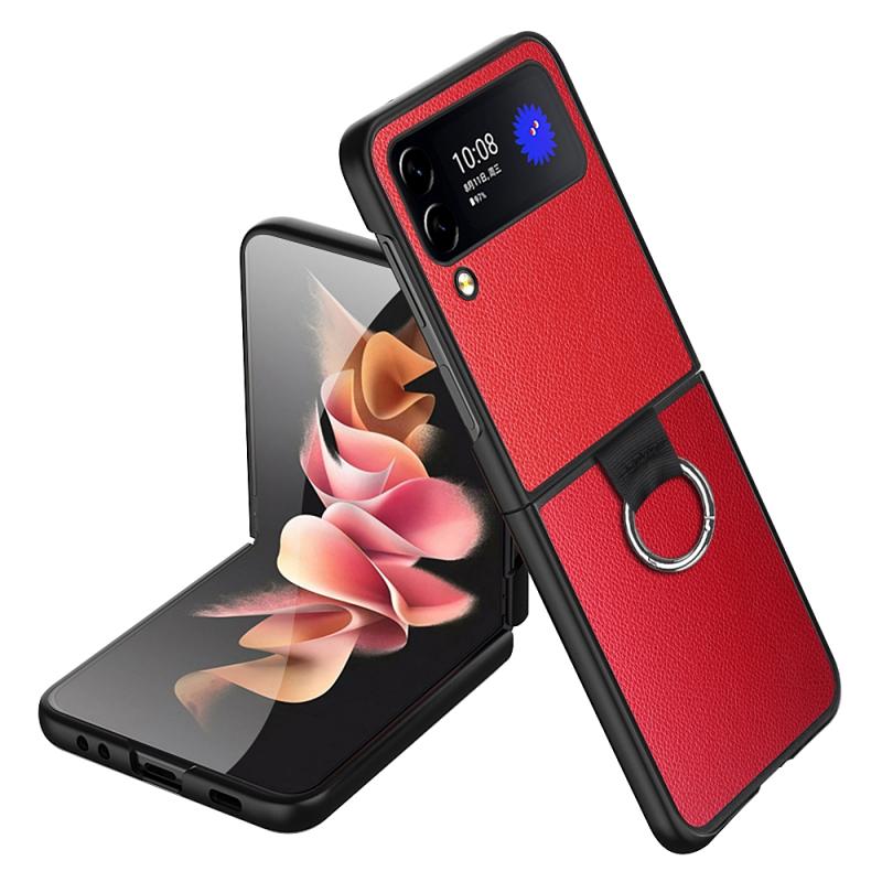 For Samsung Galaxy Z Flip4 Litchi Texture Protective Phone Case with Ring(Red)