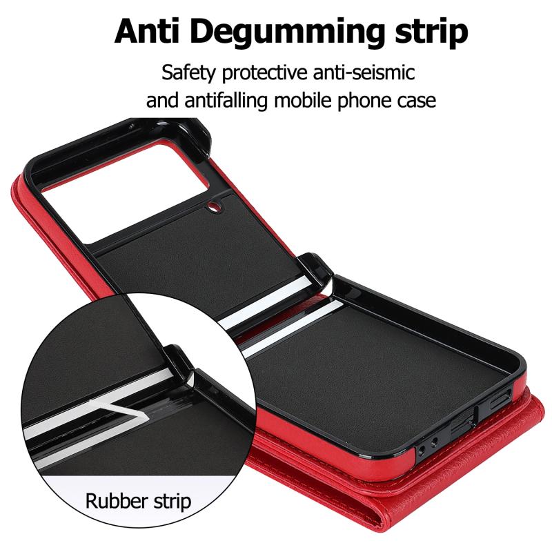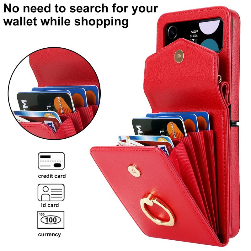For Samsung Galaxy Z Flip4 Litchi Texture RFID Card Slot Phone Case with Ring Holder(Red)