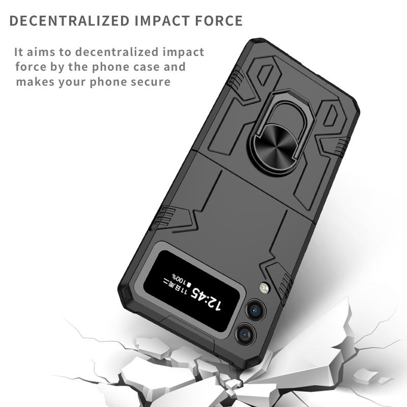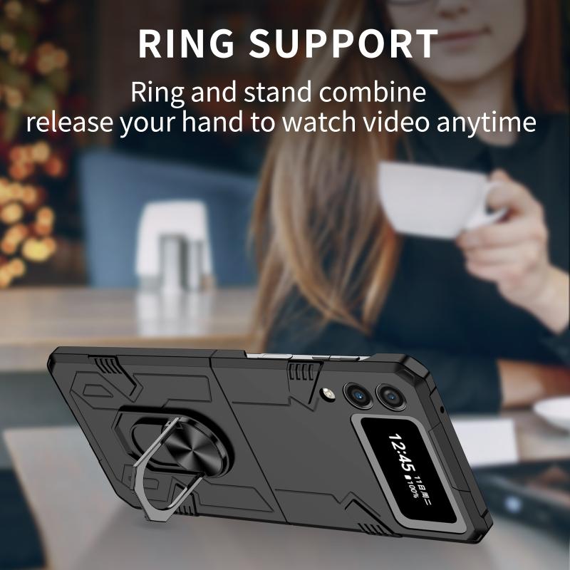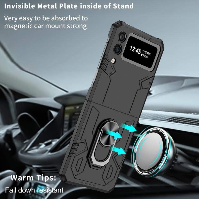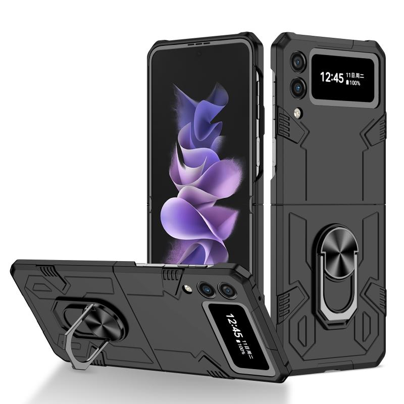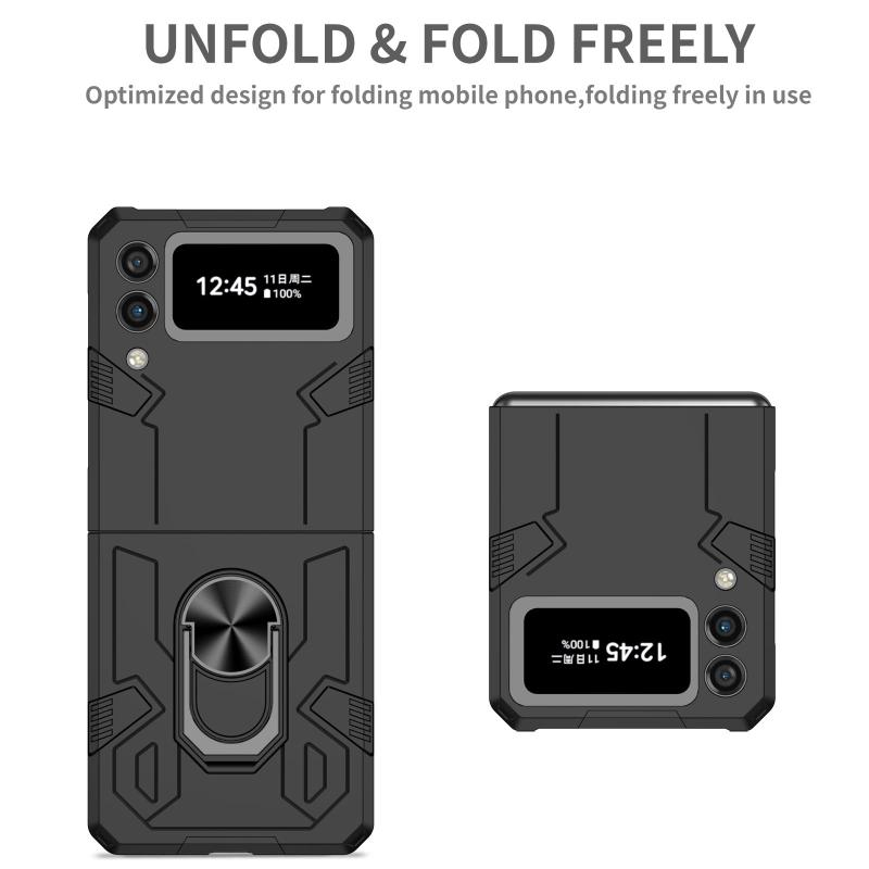 For Samsung Galaxy Z Flip4 Matte UV Armor Ring Shockproof Phone Case(Black)