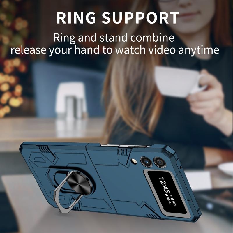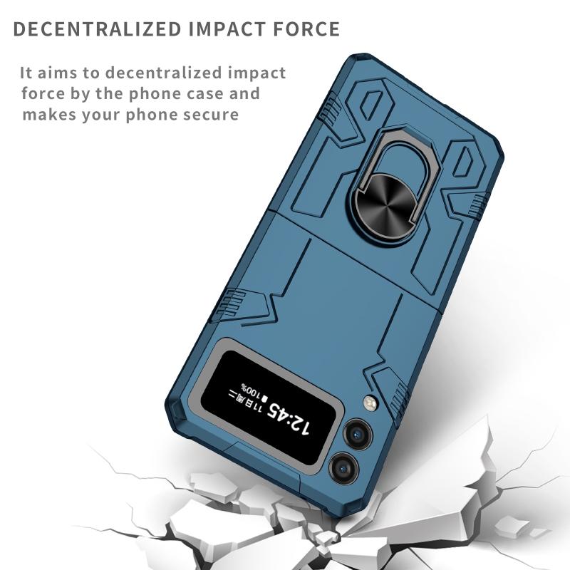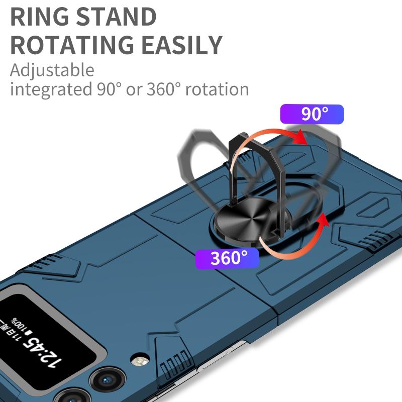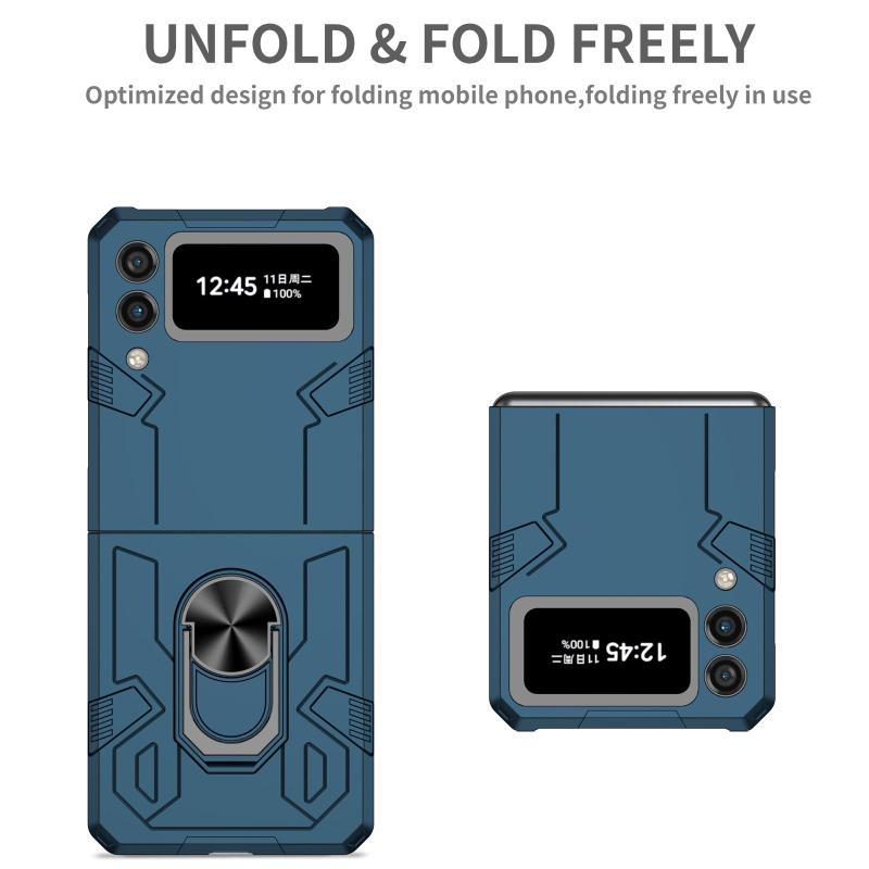 For Samsung Galaxy Z Flip4 Matte UV Armor Ring Shockproof Phone Case(Dark Blue)