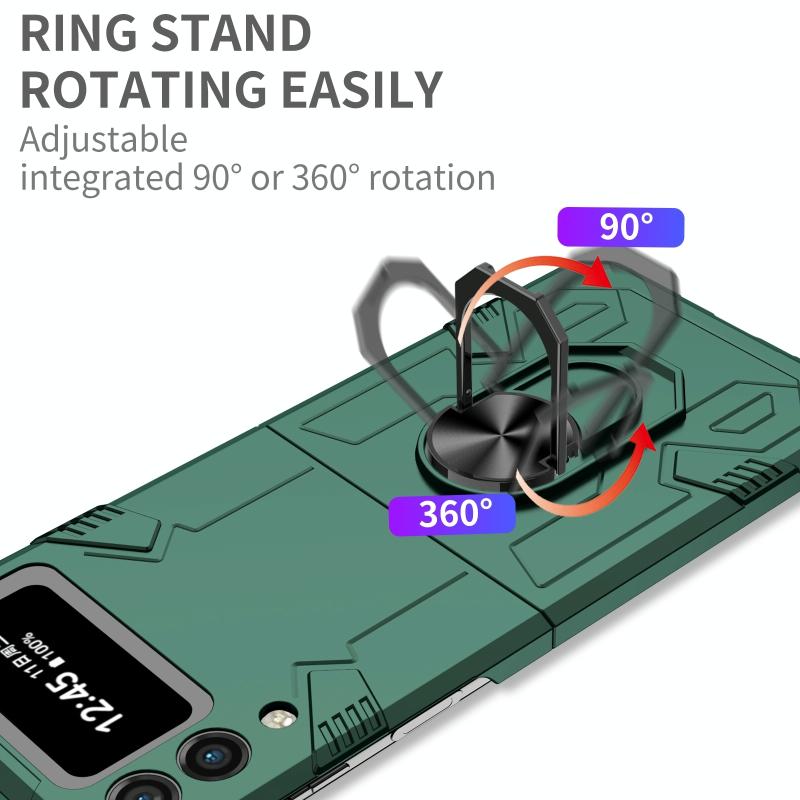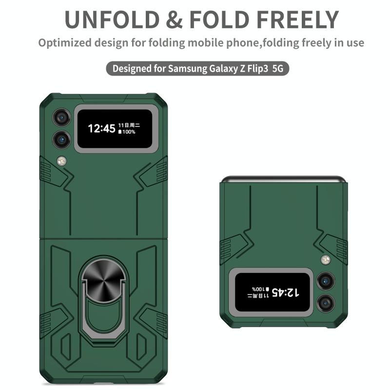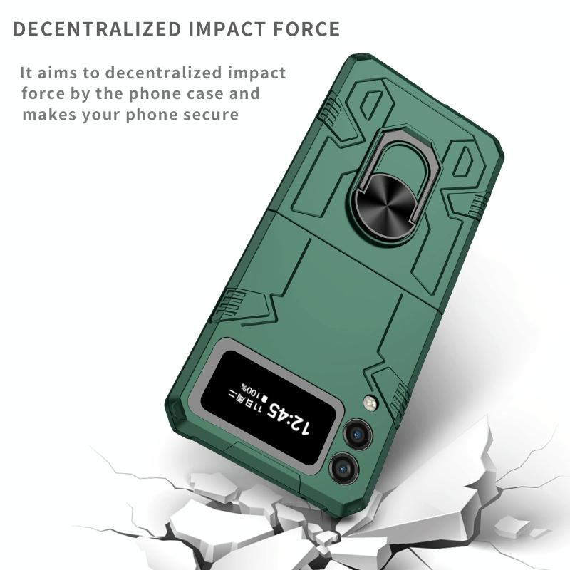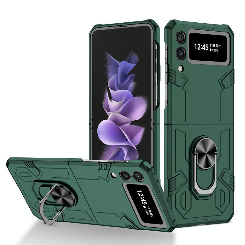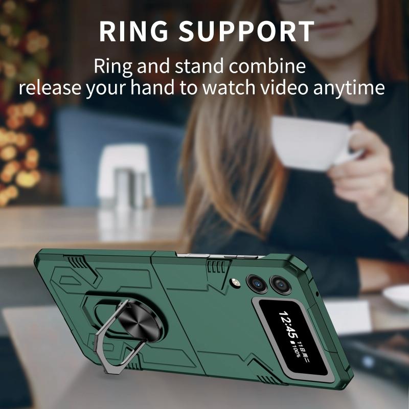 For Samsung Galaxy Z Flip4 Matte UV Armor Ring Shockproof Phone Case(Dark Green)