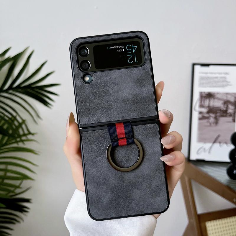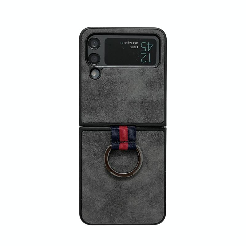For Samsung Galaxy Z Flip4 Morocco Texture PU+TPU+PC Shockproof Phone Case With Ring(Black)