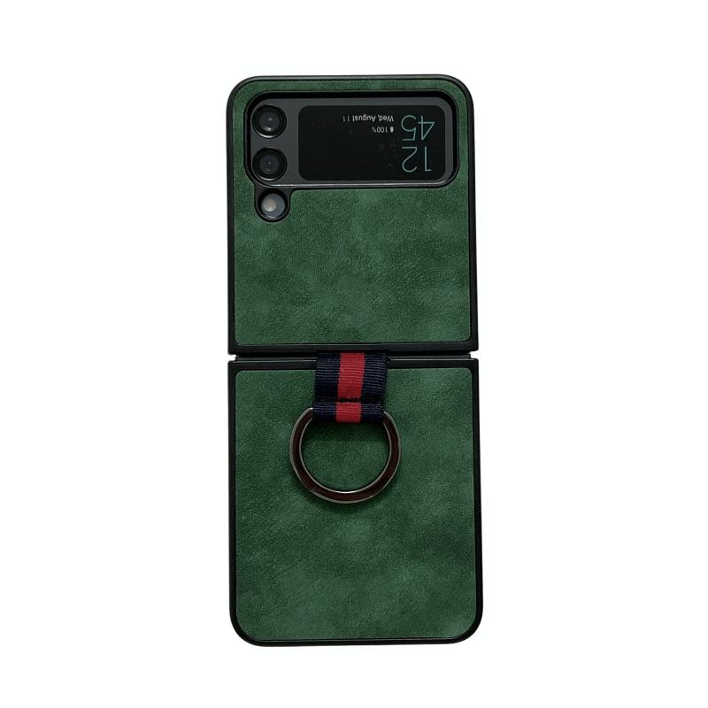For Samsung Galaxy Z Flip4 Morocco Texture PU+TPU+PC Shockproof Phone Case With Ring(Green)