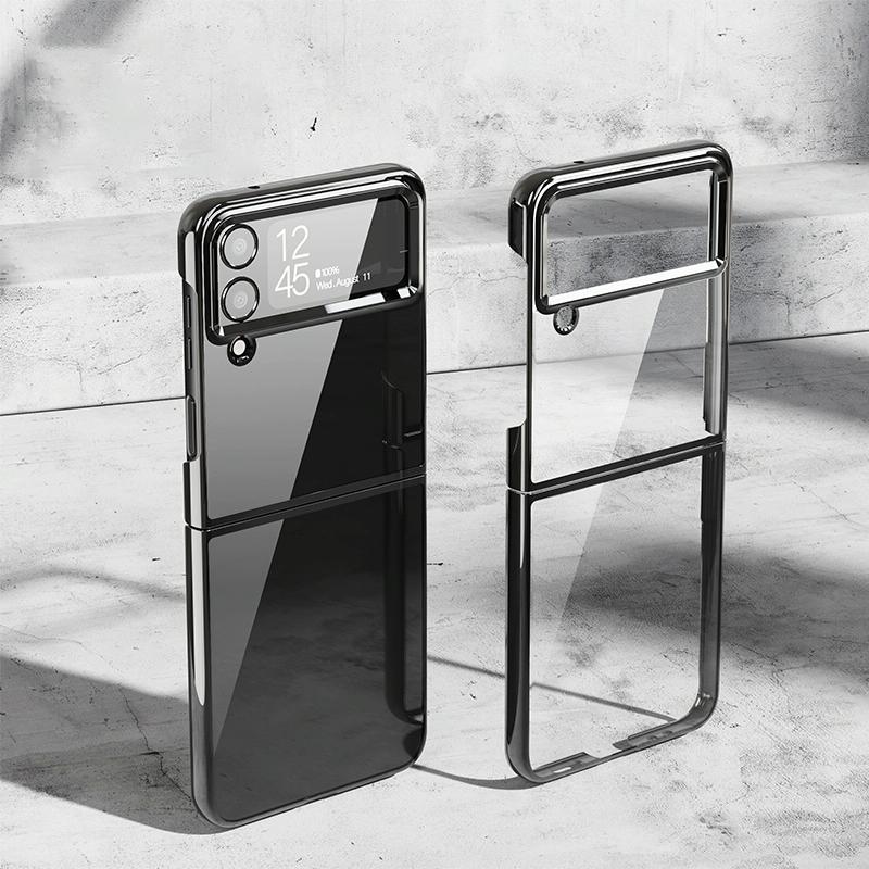 For Samsung Galaxy Z Flip4 PC Folding Electroplating Transparent Phone Case(Black)