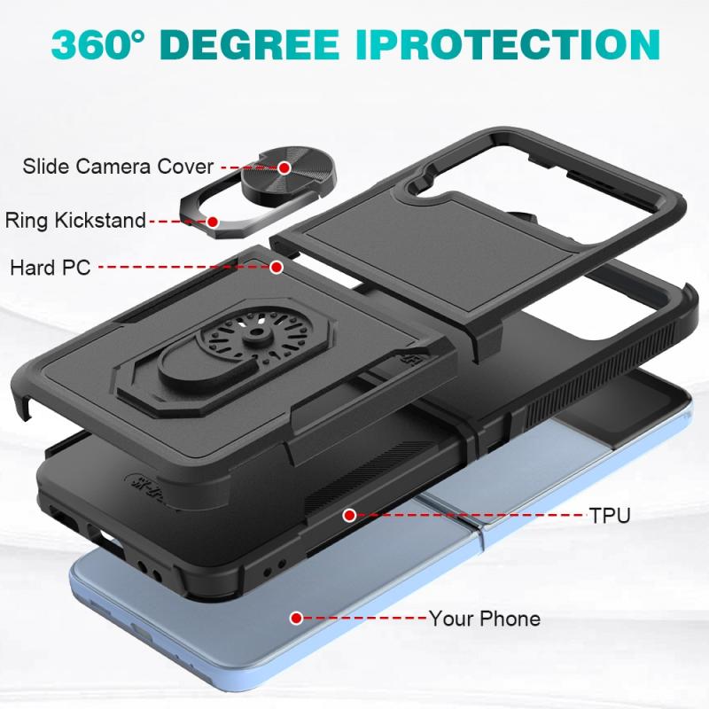 For Samsung Galaxy Z Flip4 PC + TPU Phone Case with Ring Holder(Black)