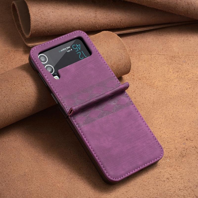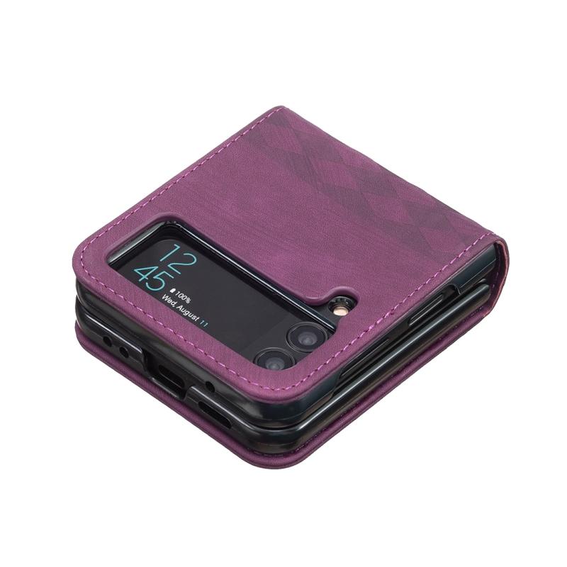 For Samsung Galaxy Z Flip4 Plaid Embossed Leather Phone Case(Dark Purple)