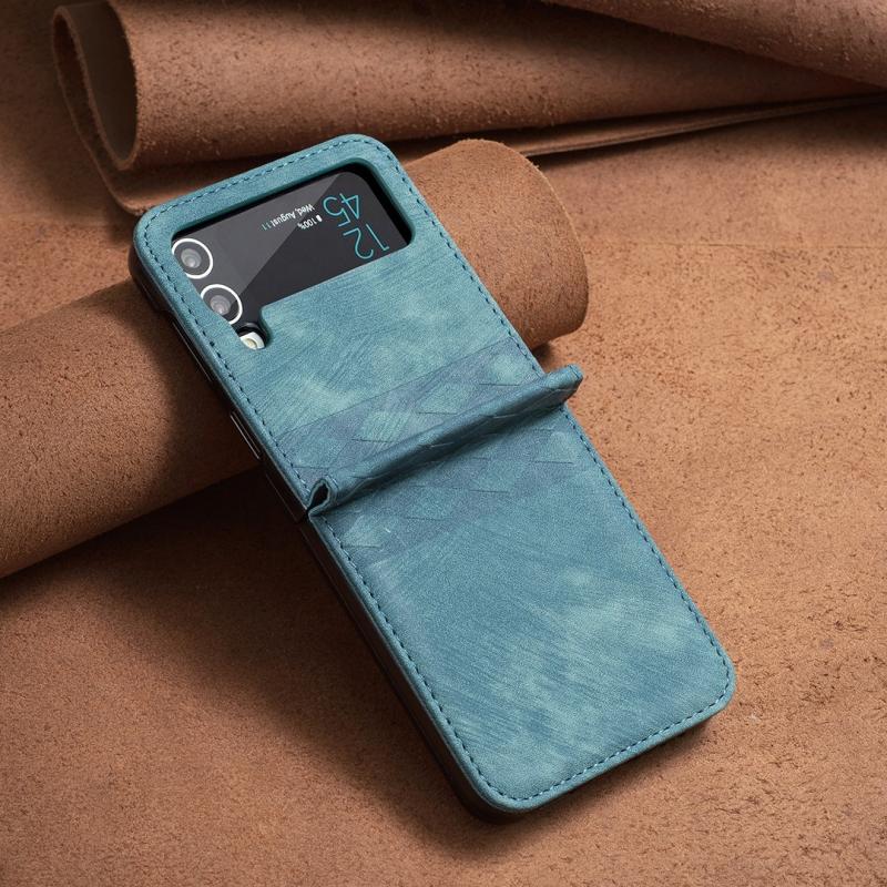 For Samsung Galaxy Z Flip4 Plaid Embossed Leather Phone Case(Green)