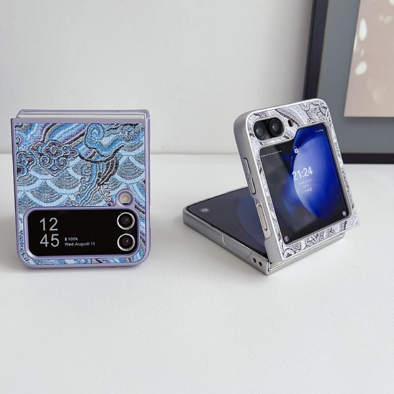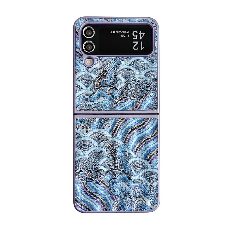 For Samsung Galaxy Z Flip4 Propitious Clouds Embroidery Full Coverage Phone Case(Blue)