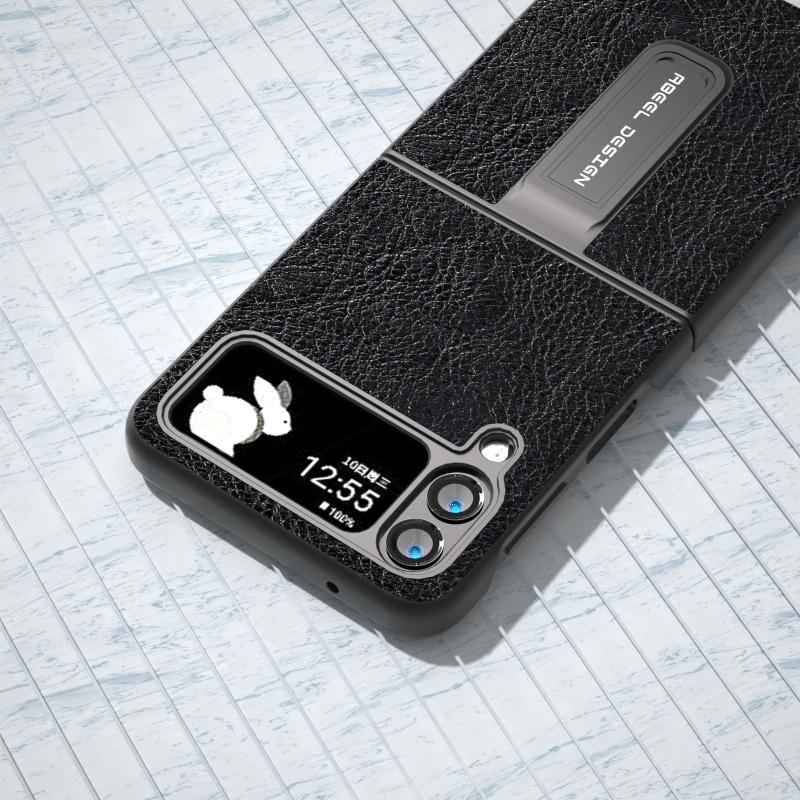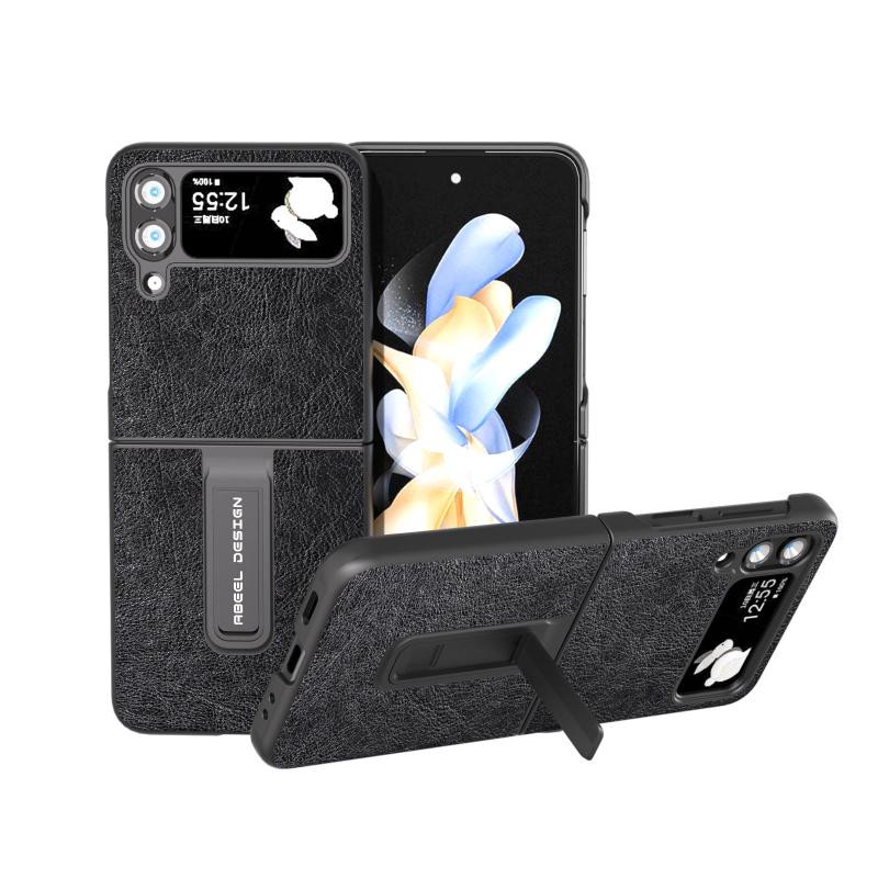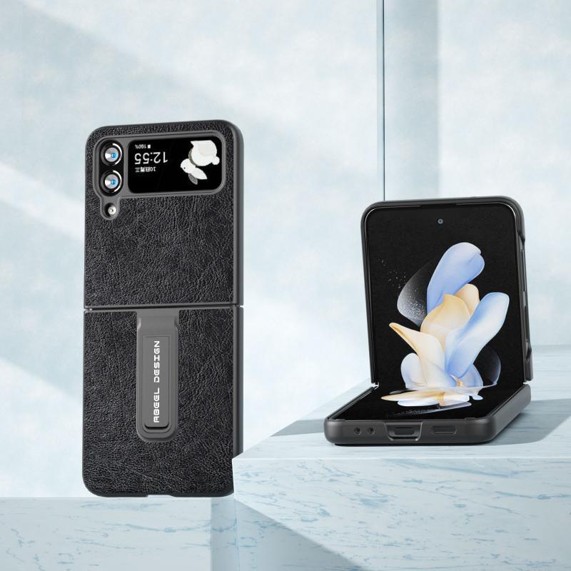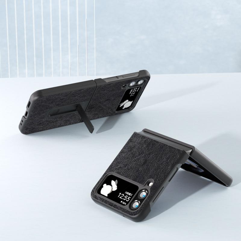 For Samsung Galaxy Z Flip4 Retro Litchi Texture PU Phone Case with Holder(Black)