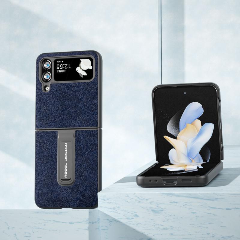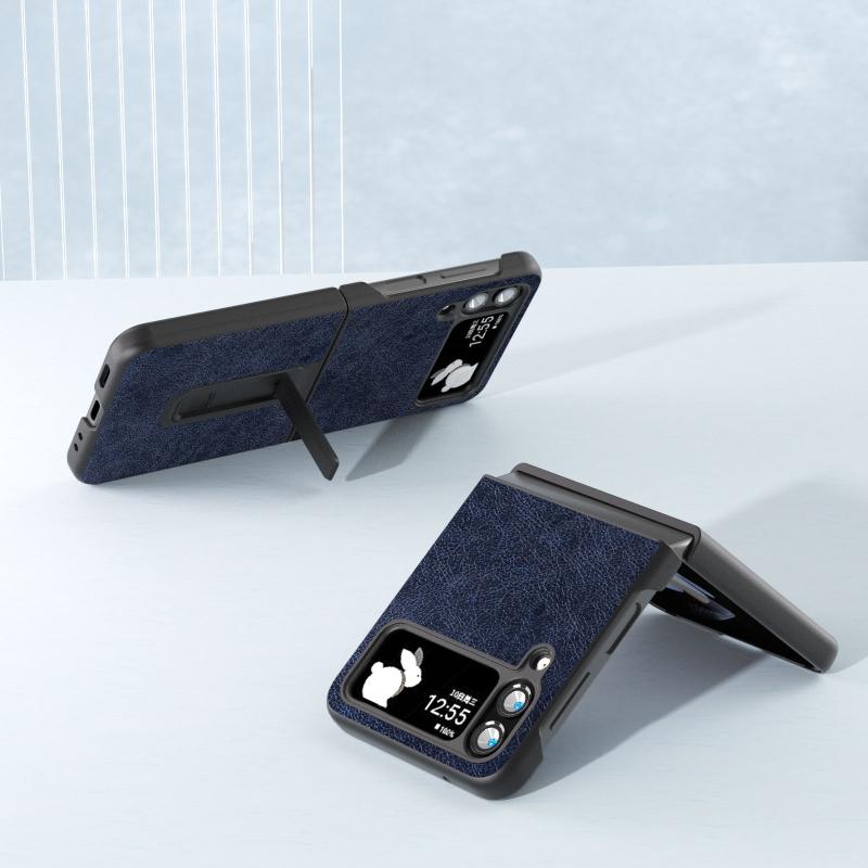For Samsung Galaxy Z Flip4 Retro Litchi Texture PU Phone Case with Holder(Blue)