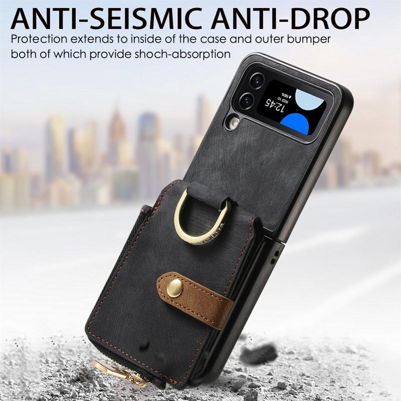 For Samsung Galaxy Z Flip4 Retro Skin-feel Ring Zipper Wallet Phone Case(Black)