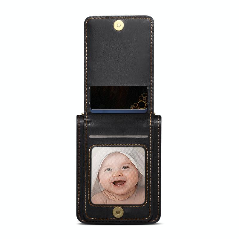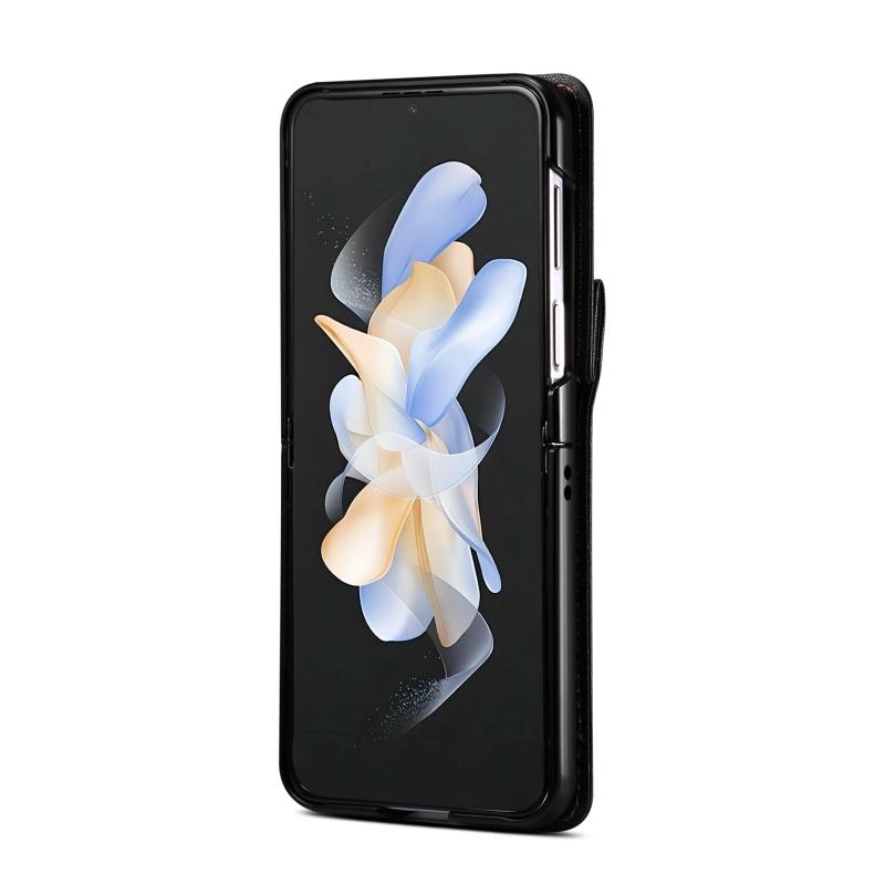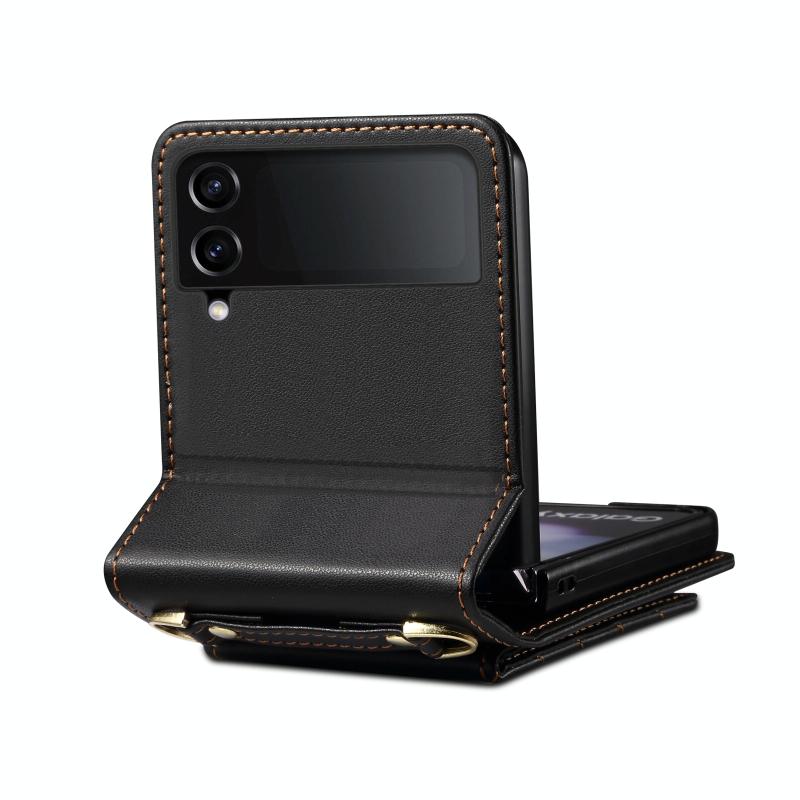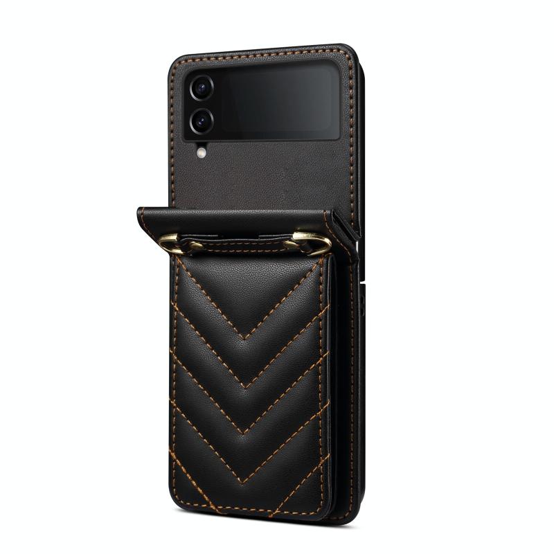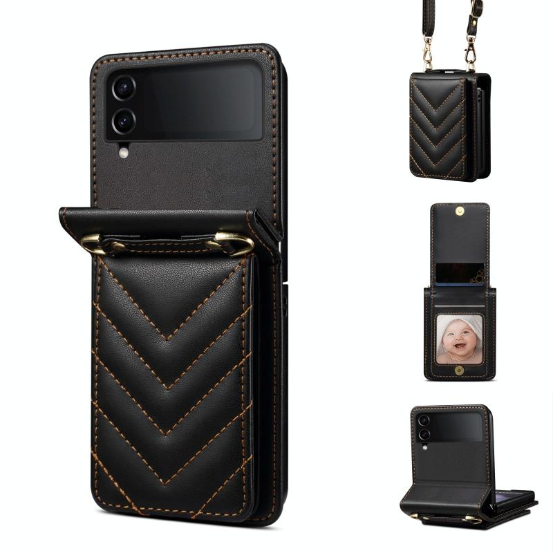 For Samsung Galaxy Z Flip4 Rhombic Folding Leather Phone Case with Long Lanyard(Black)