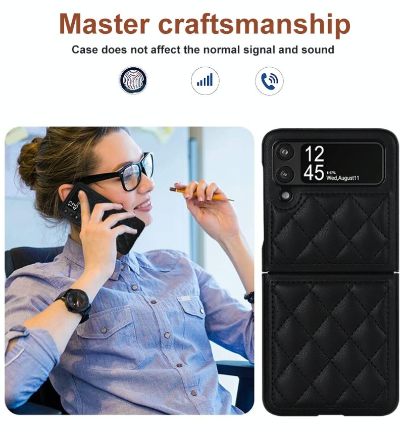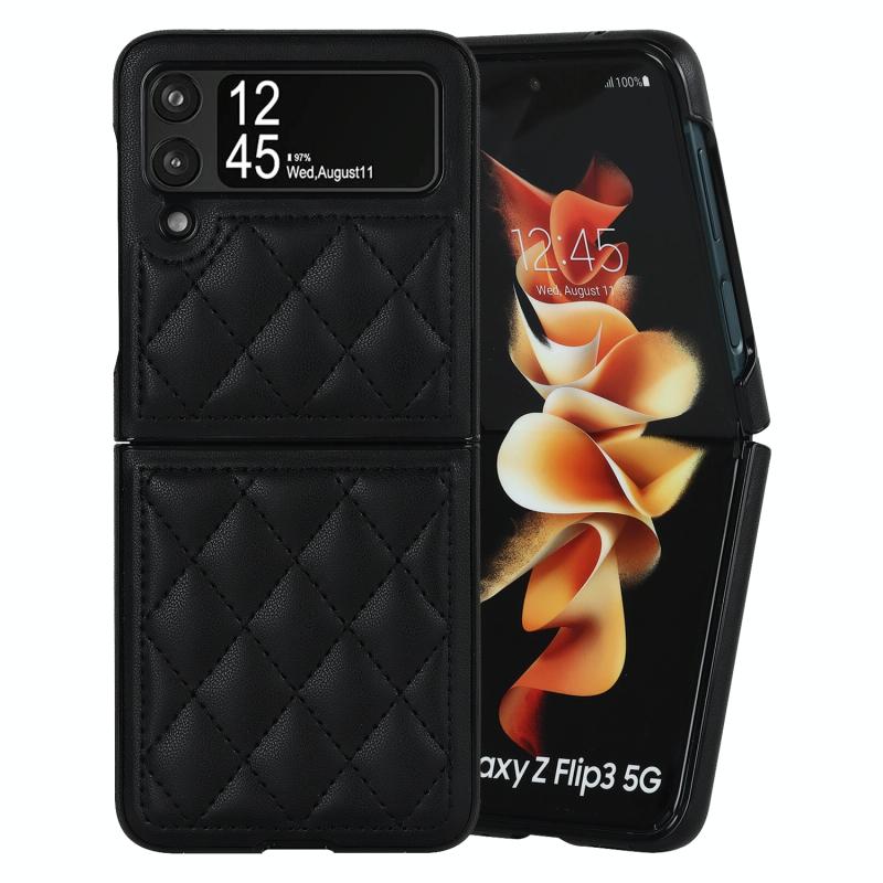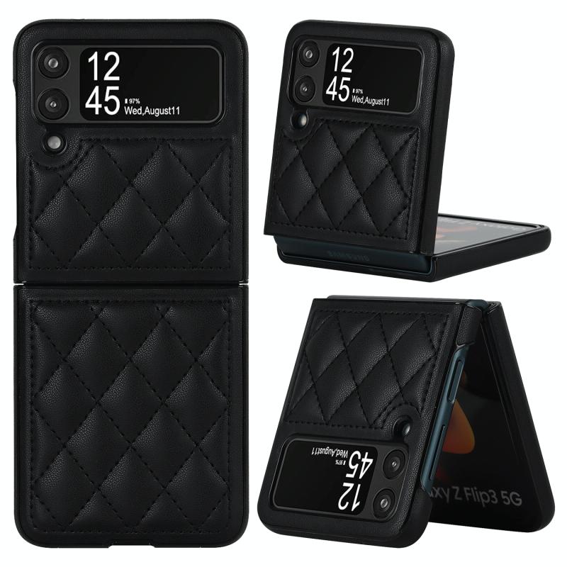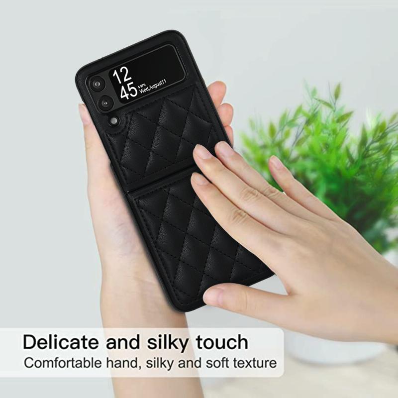 For Samsung Galaxy Z Flip4 Rhombic Microfiber Folding Phone Case(Black)