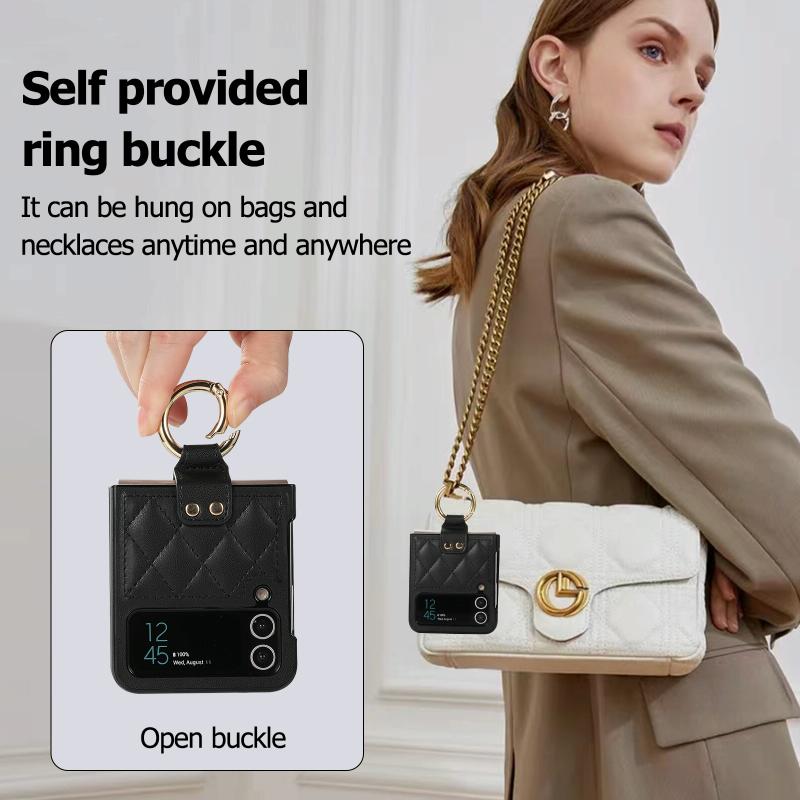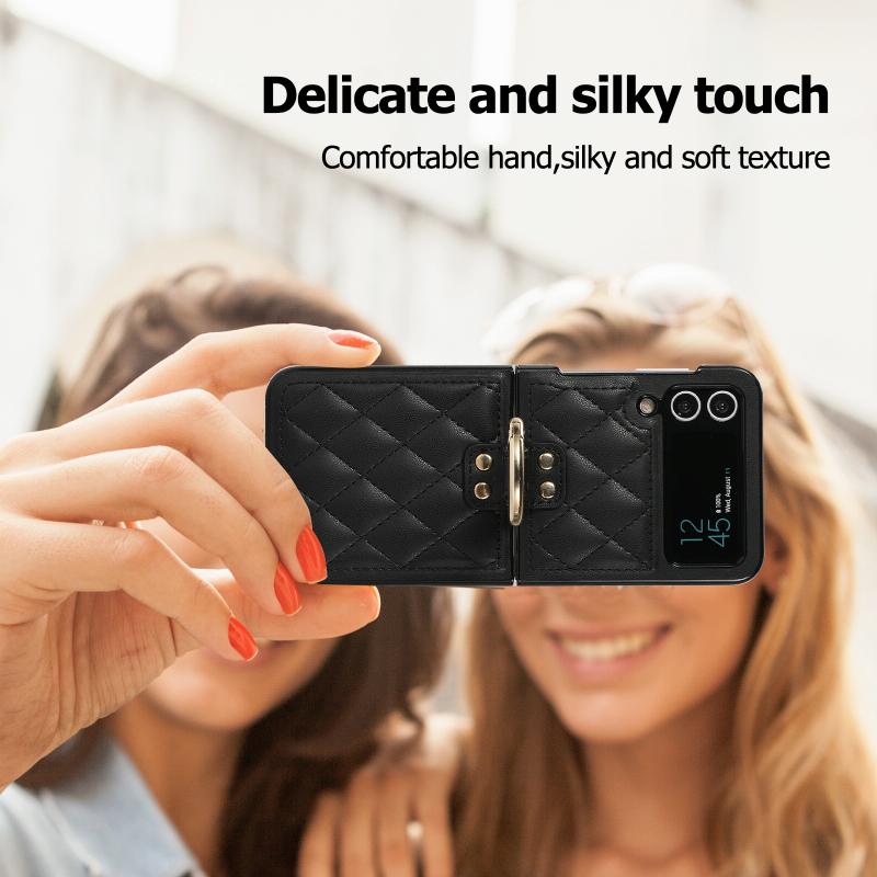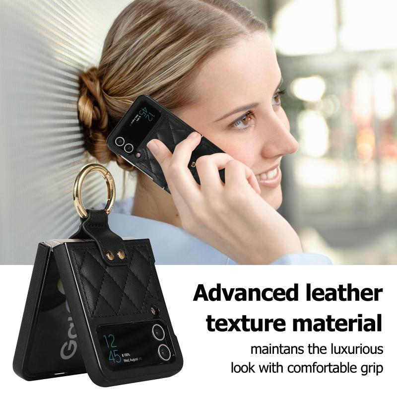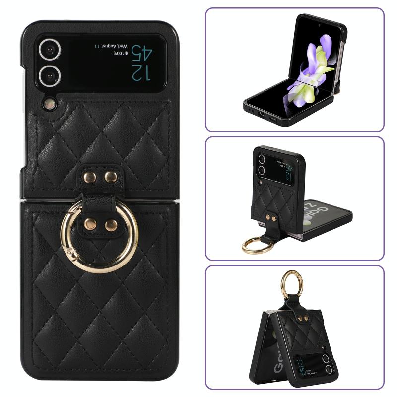For Samsung Galaxy Z Flip4 Rhombic Microfiber Folding Phone Case with Ring(Black)