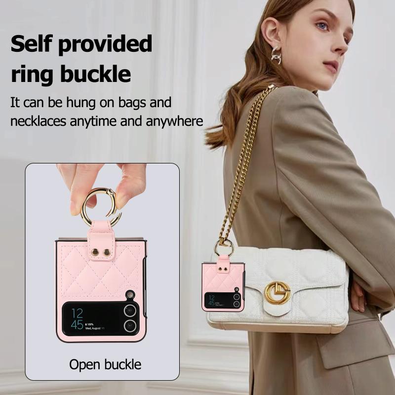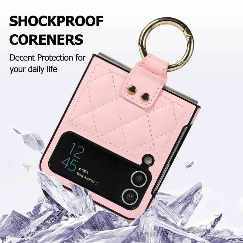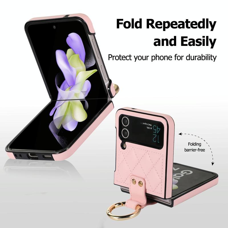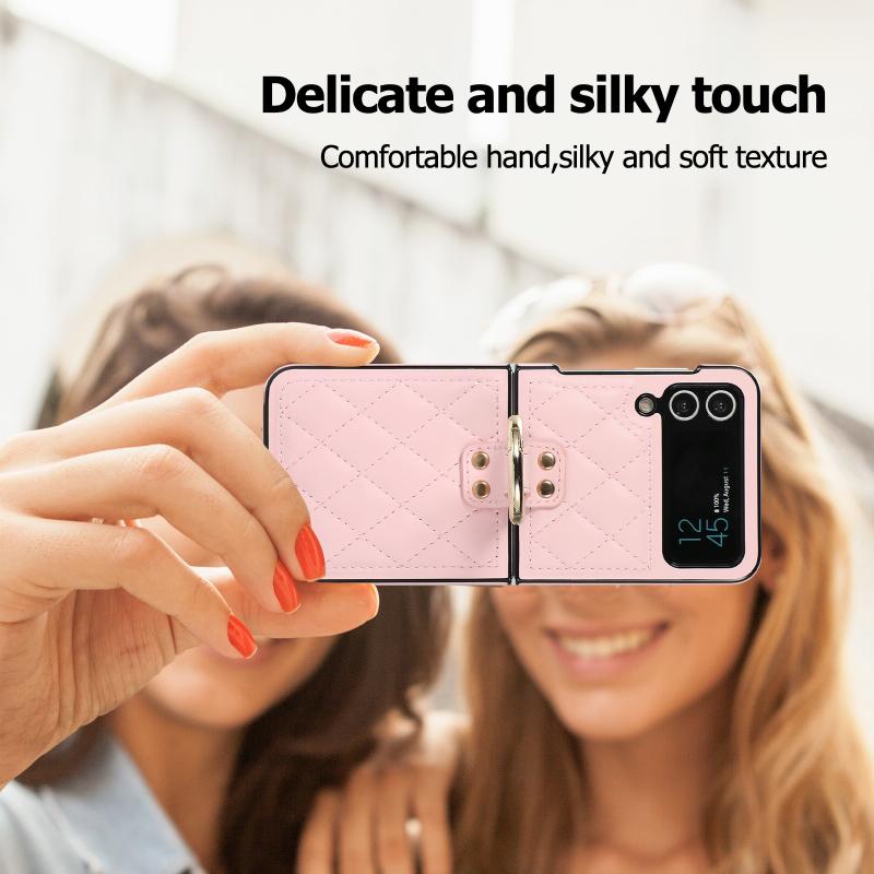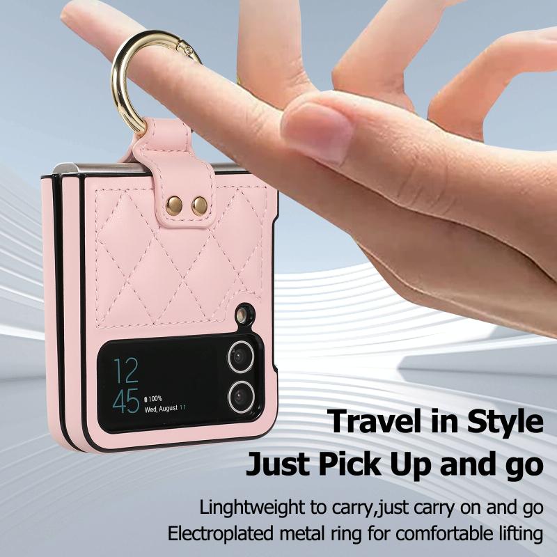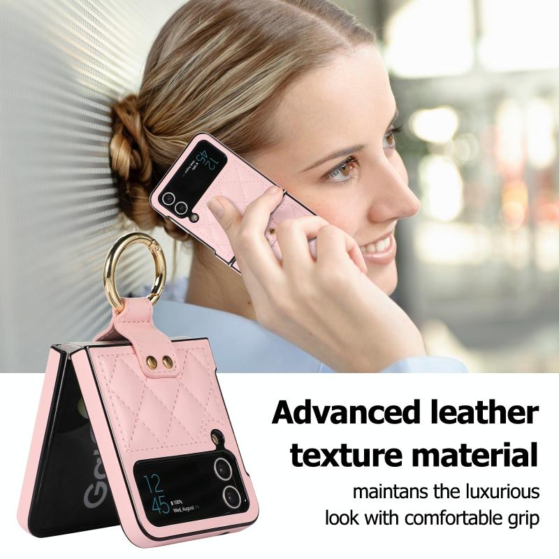 For Samsung Galaxy Z Flip4 Rhombic Microfiber Folding Phone Case with Ring(Pink)