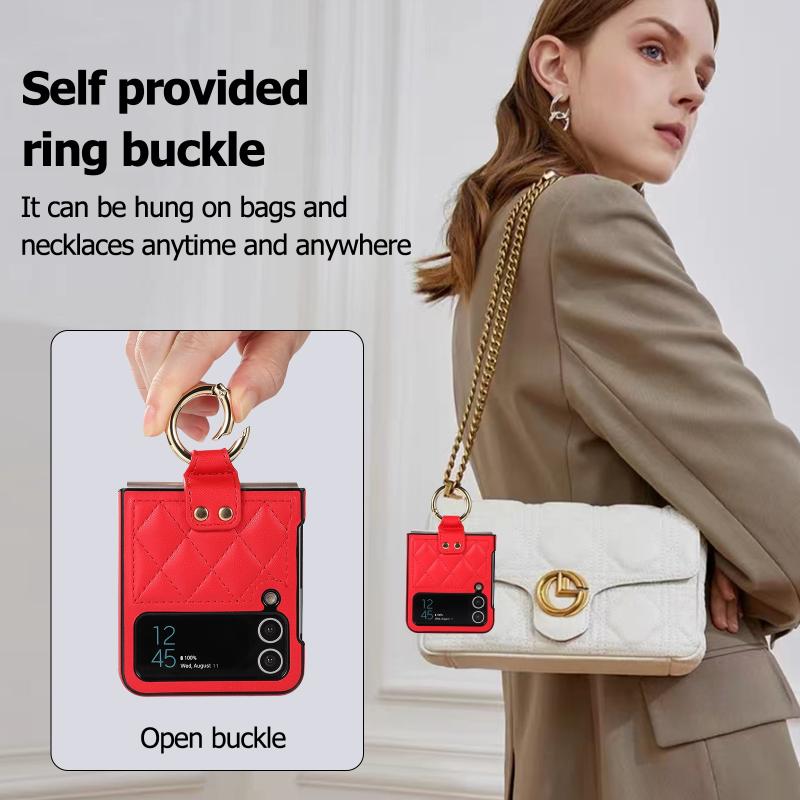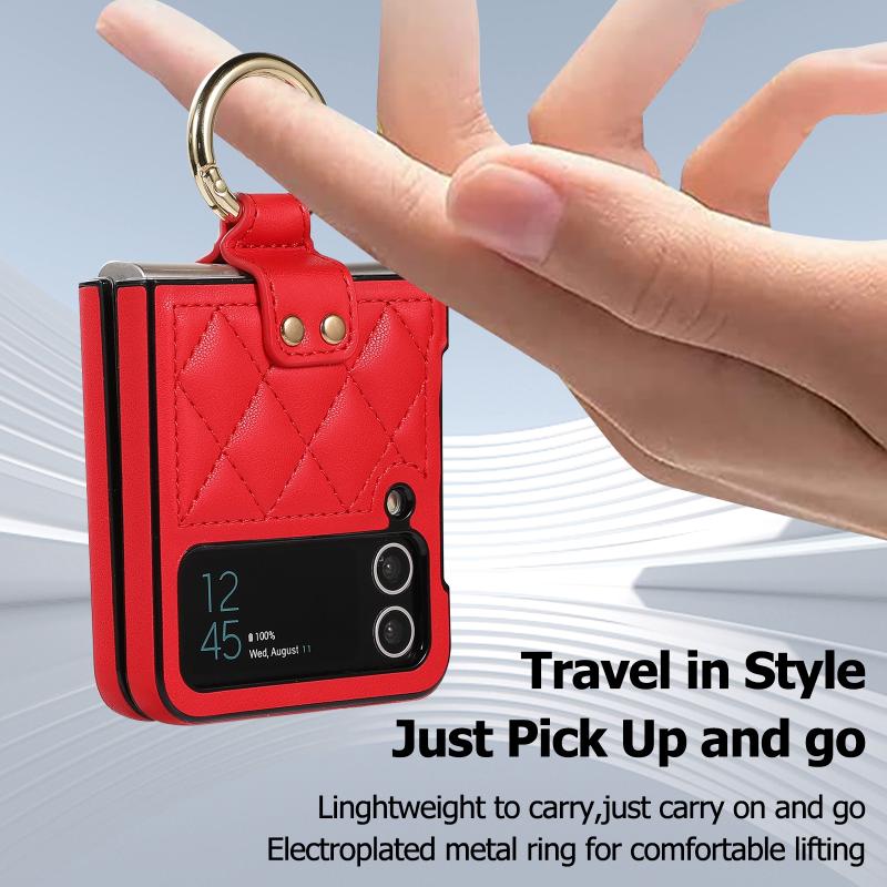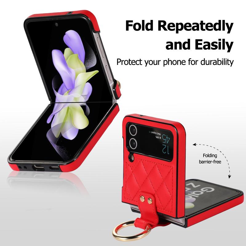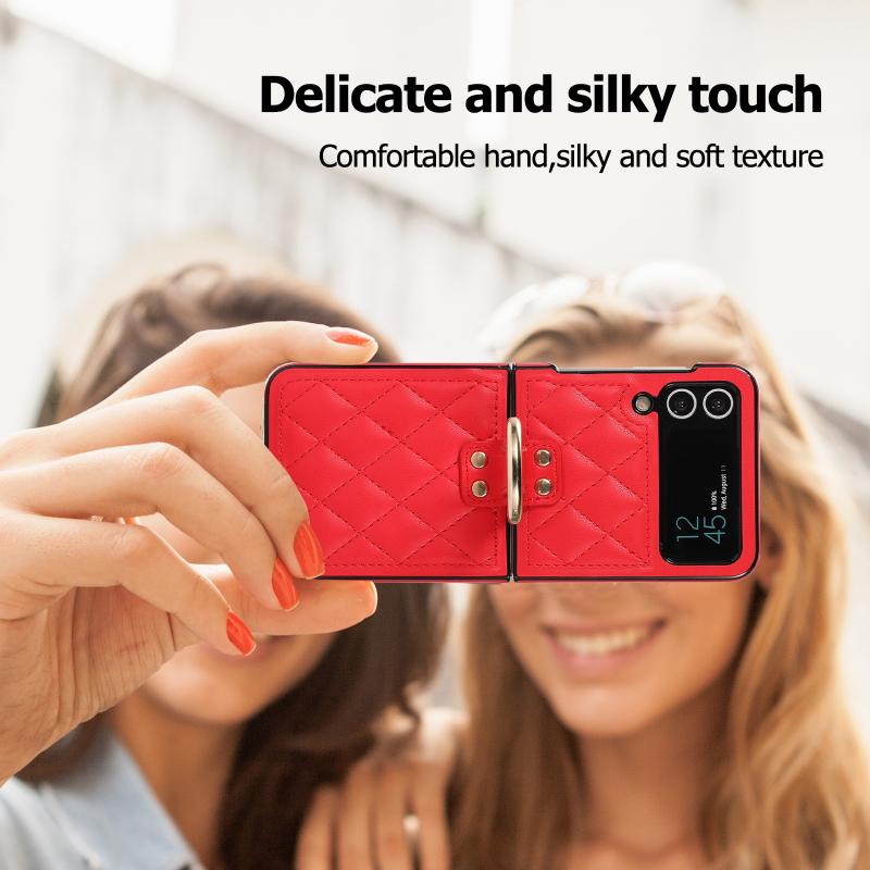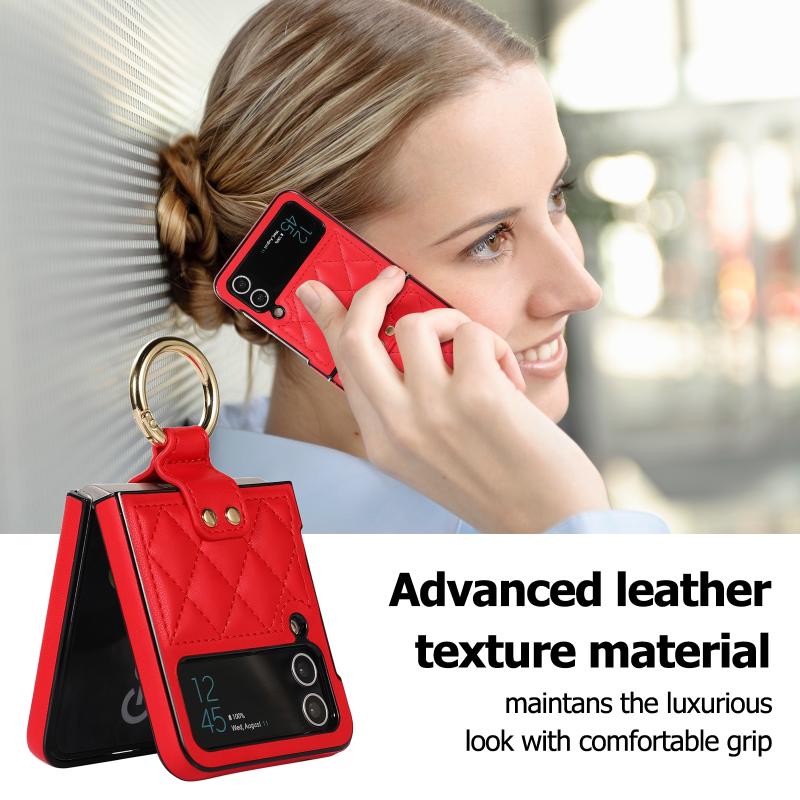 For Samsung Galaxy Z Flip4 Rhombic Microfiber Folding Phone Case with Ring(Red)