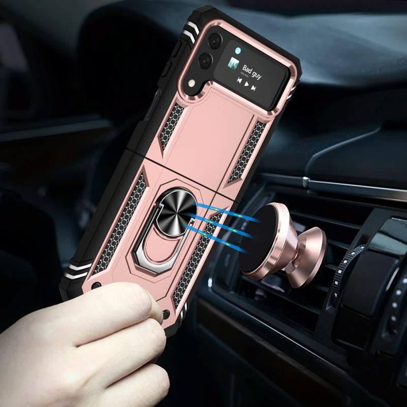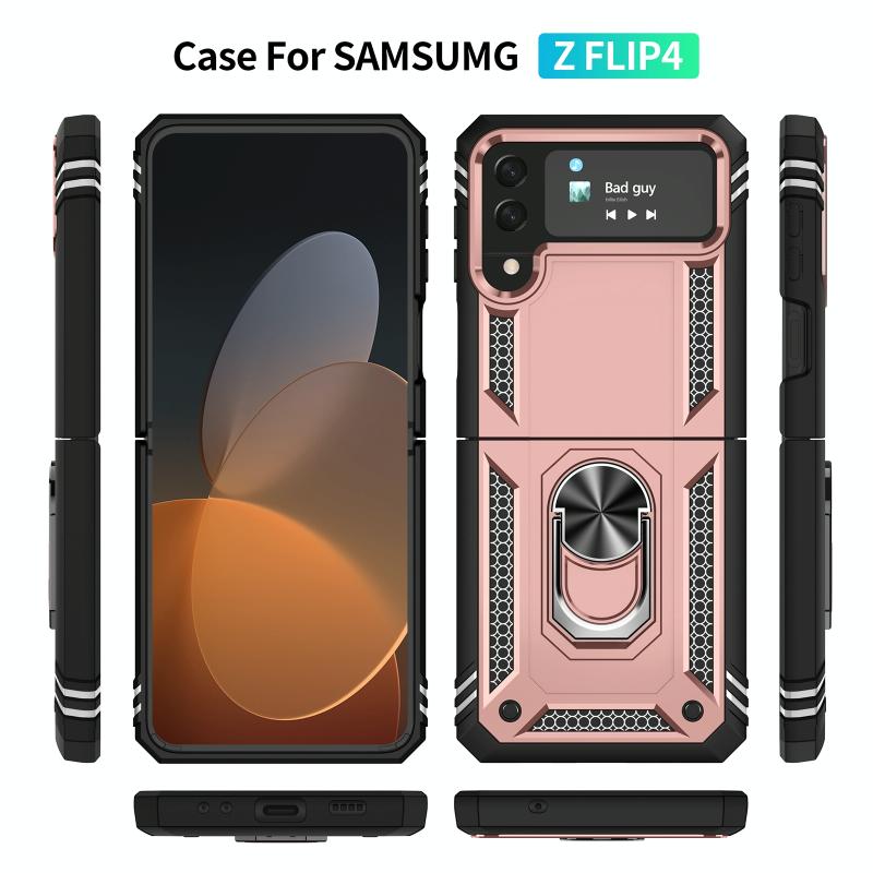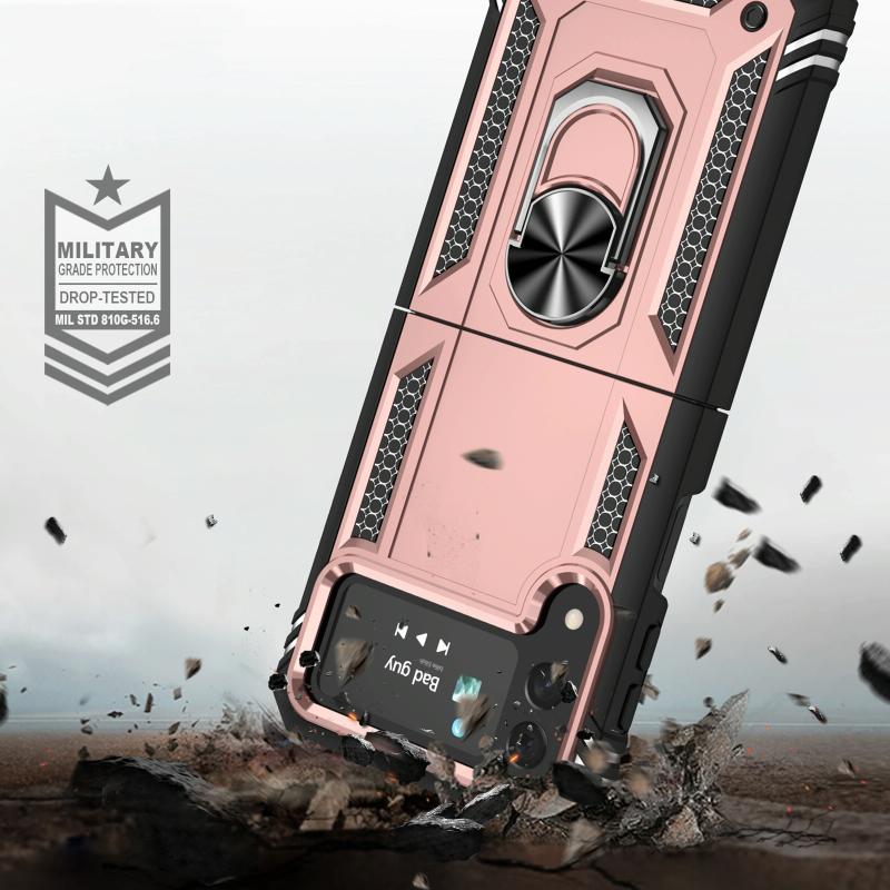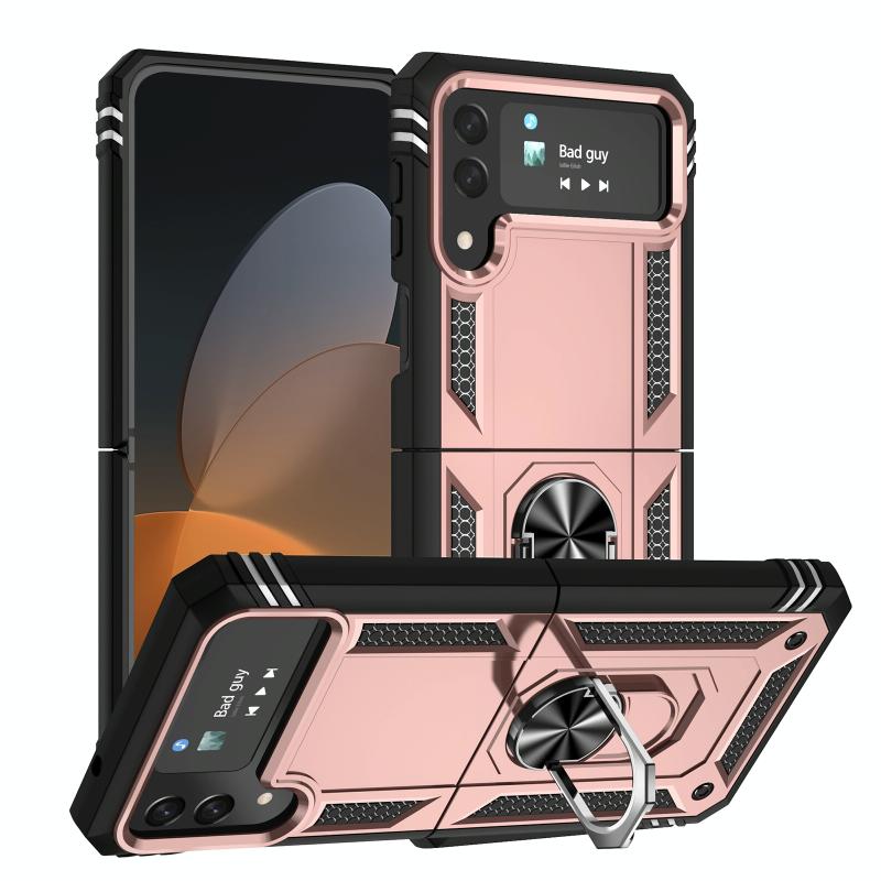 For Samsung Galaxy Z Flip4 Shockproof TPU + PC Phone Case with Holder(Rose Gold)