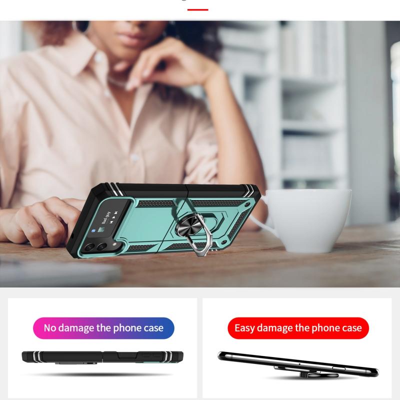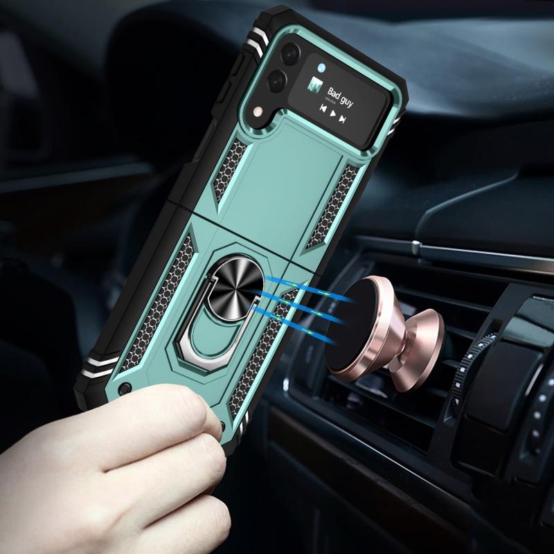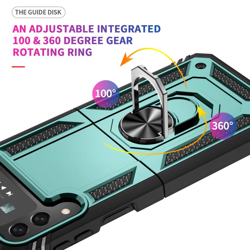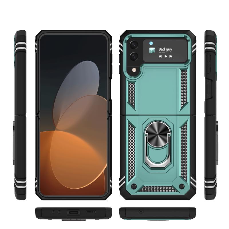 For Samsung Galaxy Z Flip4 Shockproof TPU + PC Protective Case with 360 Degree Rotating Holder(Dark Green)