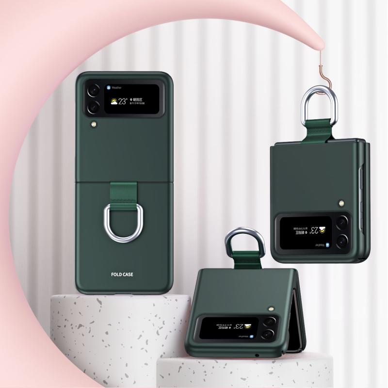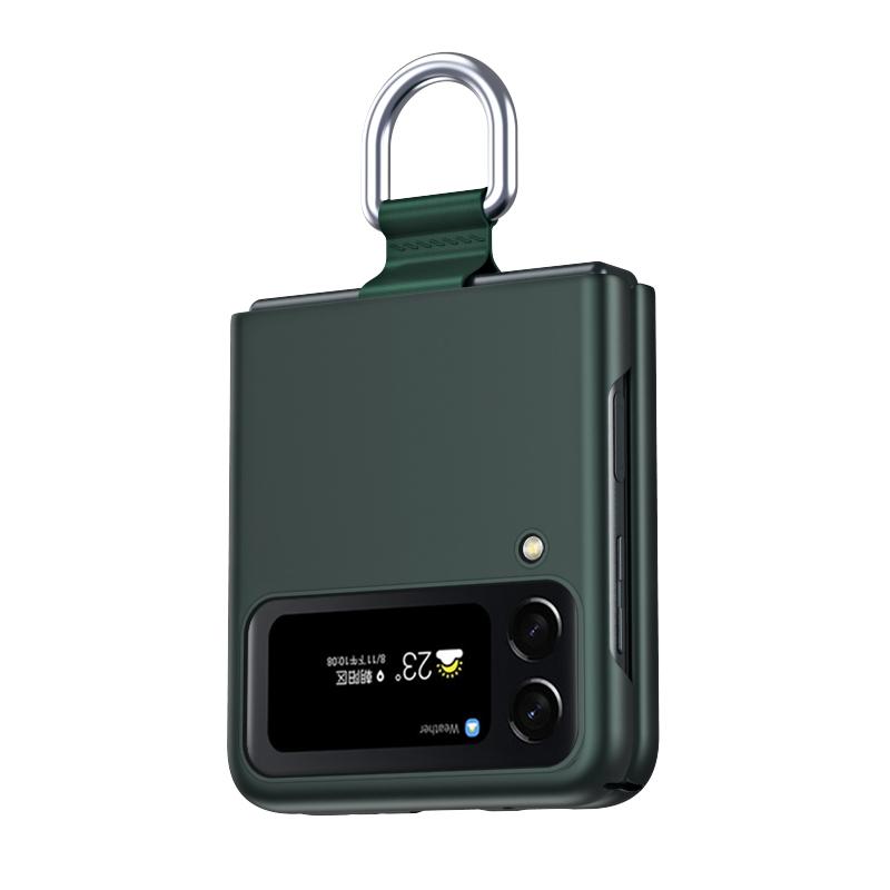 For Samsung Galaxy Z Flip4 Skin Feel Folding Phone Case with Drawstring Key Chain(Green)