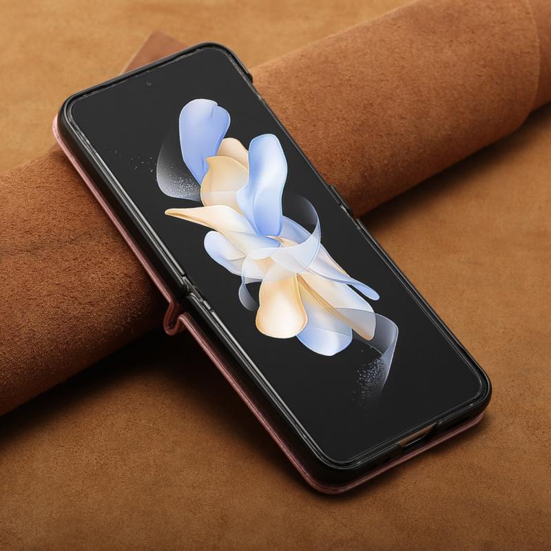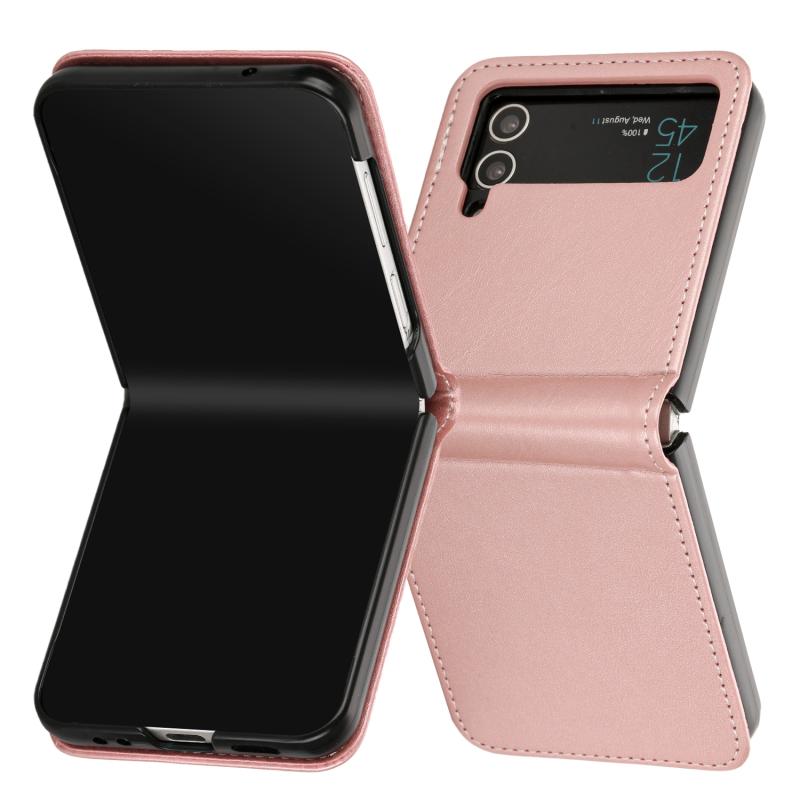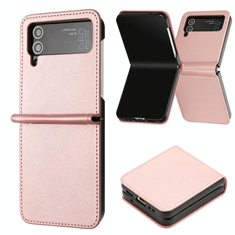 For Samsung Galaxy Z Flip4 Solid Color Calf Texture Folding Leather Phone Case(Rose Gold)