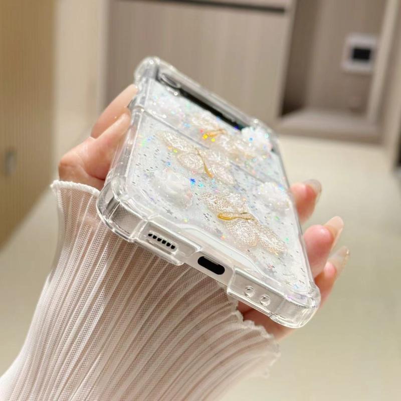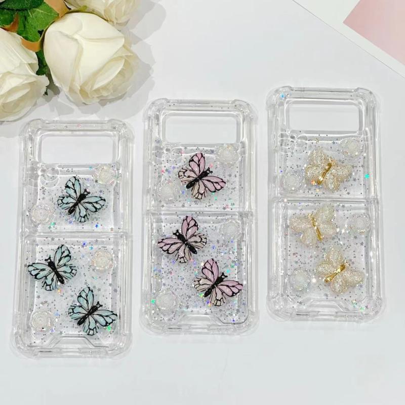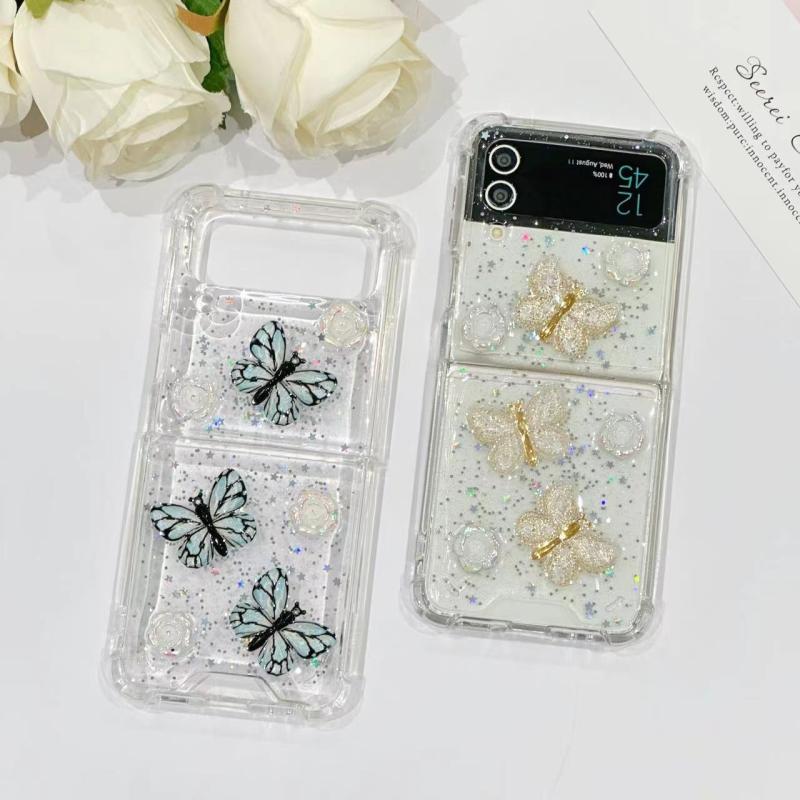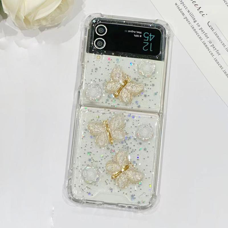 For Samsung Galaxy Z Flip4 Three-dimensional Butterfly Glitter TPU Phone Case(Gold)