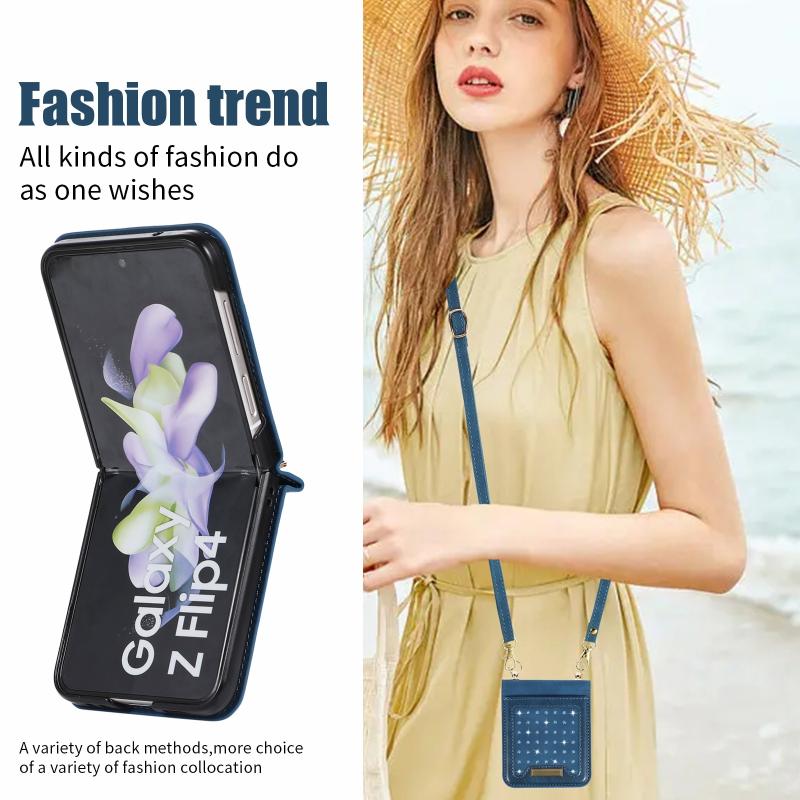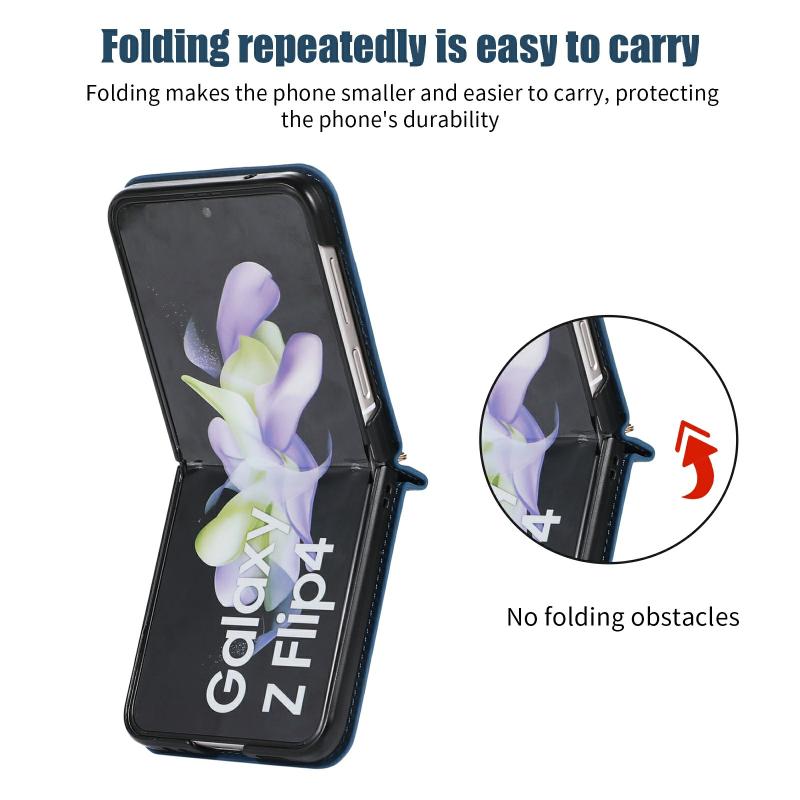 For Samsung Galaxy Z Flip4 Three-fold RFID Leather Phone Case with Lanyard(Blue)
