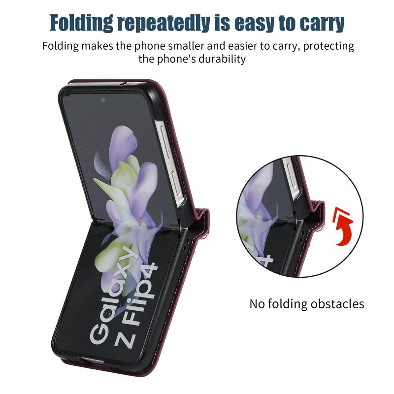 For Samsung Galaxy Z Flip4 Three-fold RFID Leather Phone Case with Lanyard(Red)