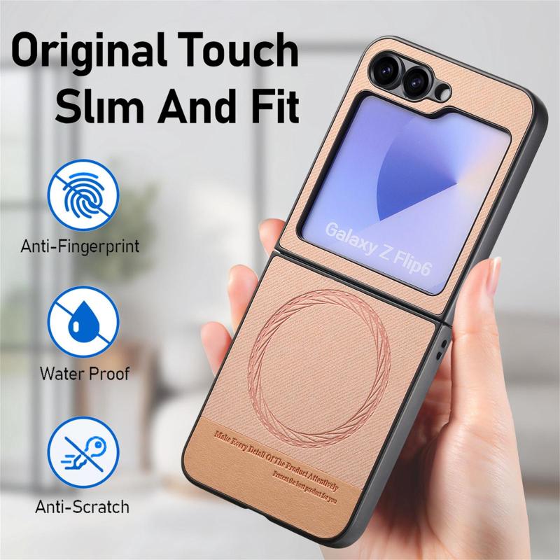 For Samsung Galaxy Z Flip4 Twill Fabric Leather Skin Magnetic Back Phone Case(Pink)