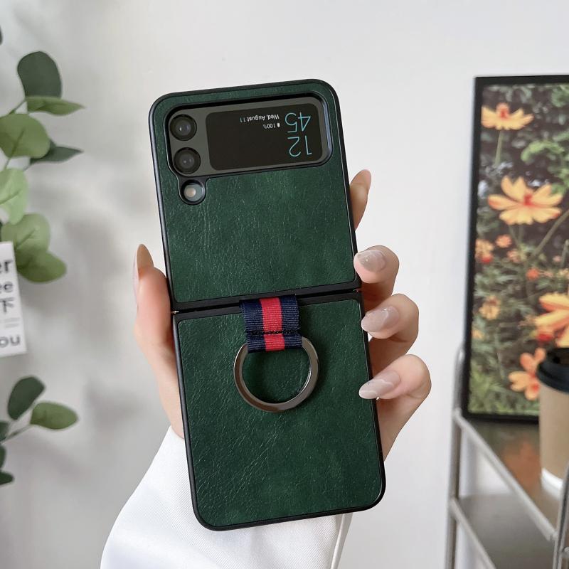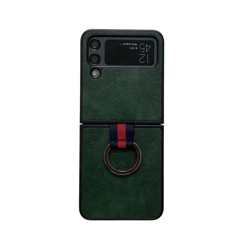 For Samsung Galaxy Z Flip4 Two-color Litchi Texture Phone Case With Ring(Green)