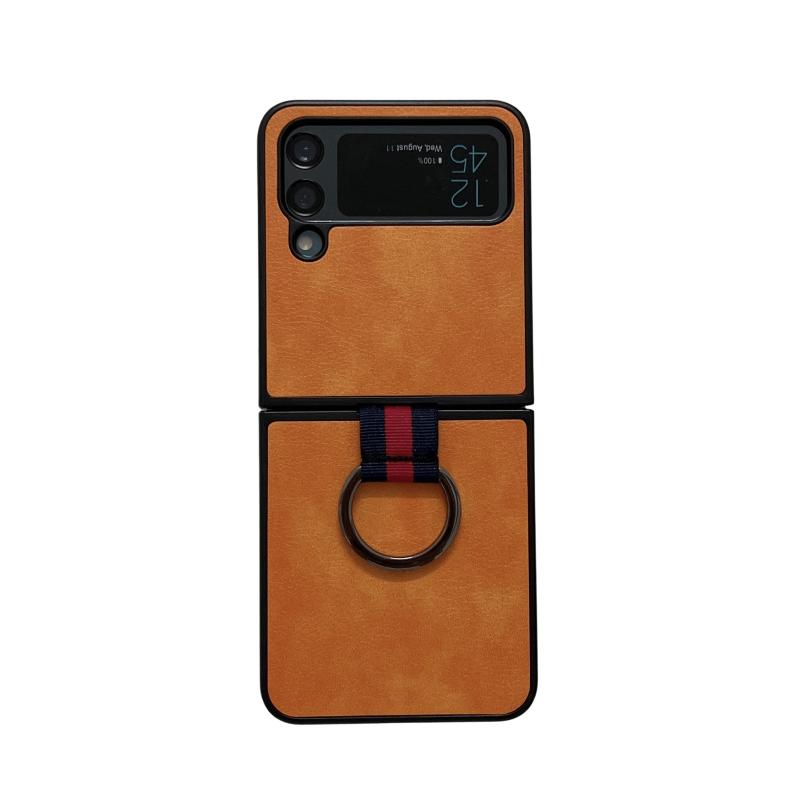 For Samsung Galaxy Z Flip4 Two-color Litchi Texture Phone Case With Ring(Orange)