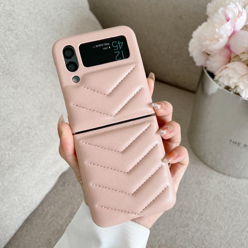 For Samsung Galaxy Z Flip4 V-shape Suture Fold Protective Phone Case(Pink)