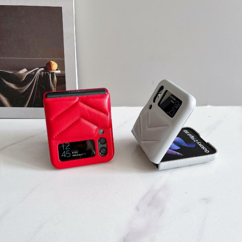 For Samsung Galaxy Z Flip4 V-shape Suture Fold Protective Phone Case(Red)