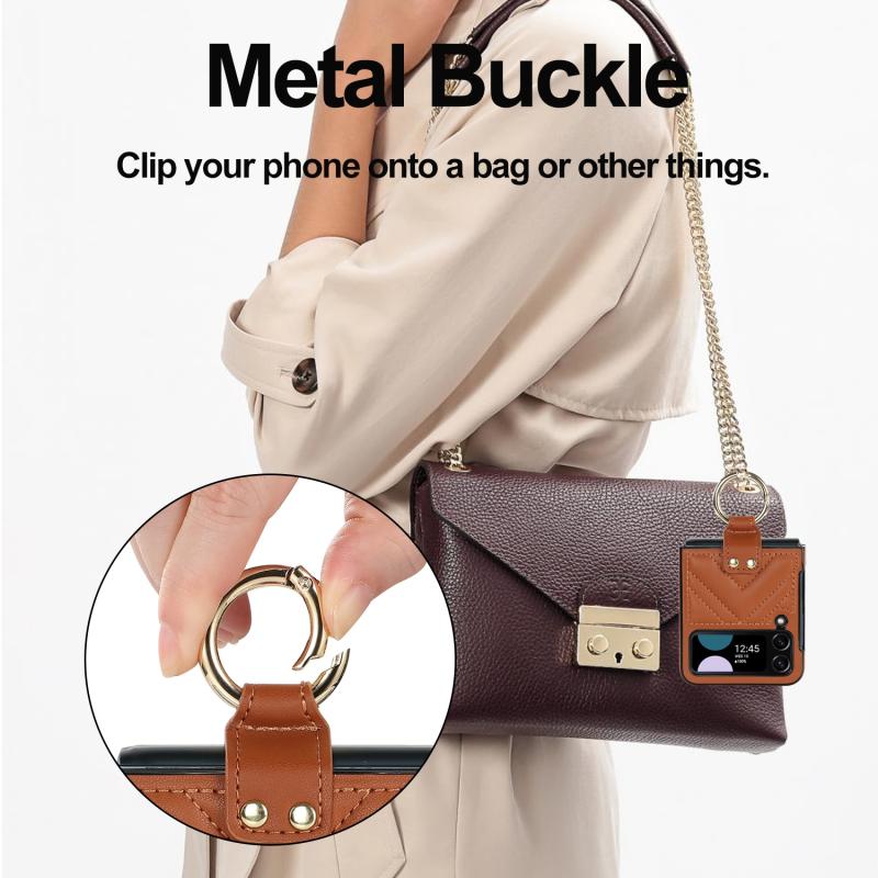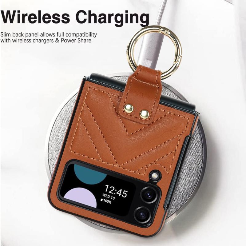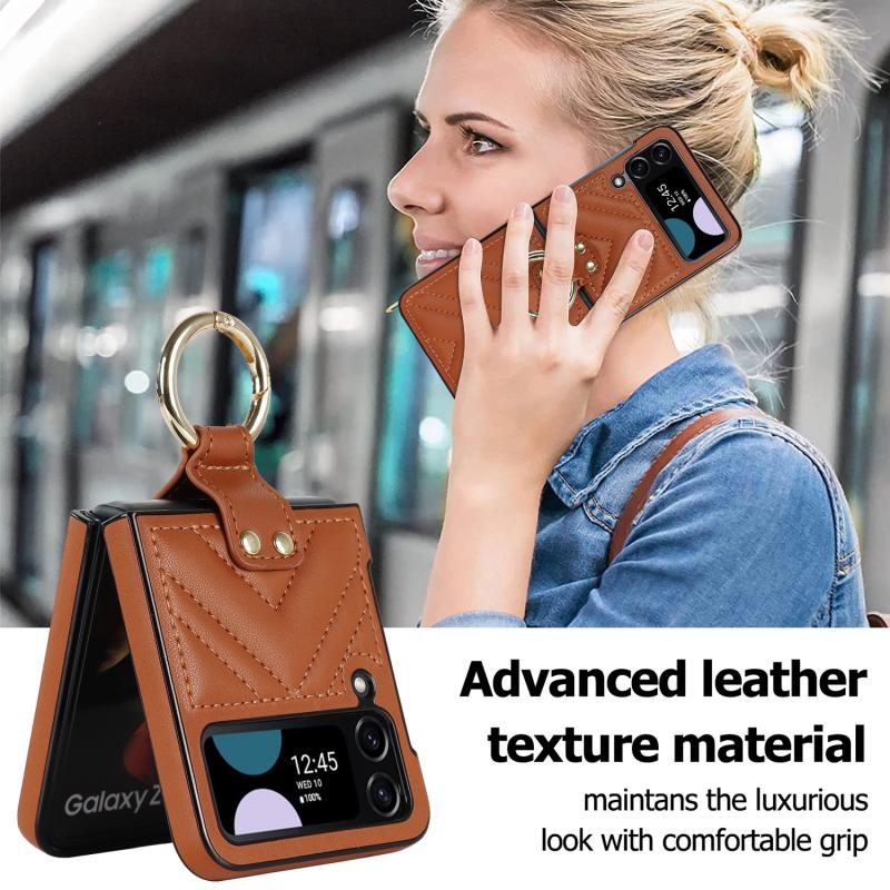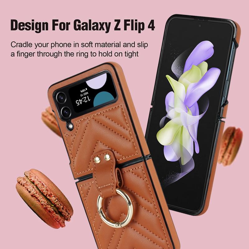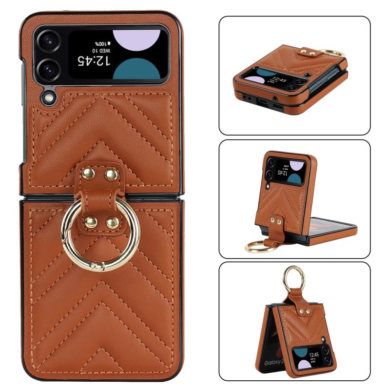 For Samsung Galaxy Z Flip4 V-shaped Folding Protective Phone Case with Folding Ring(Brown)
