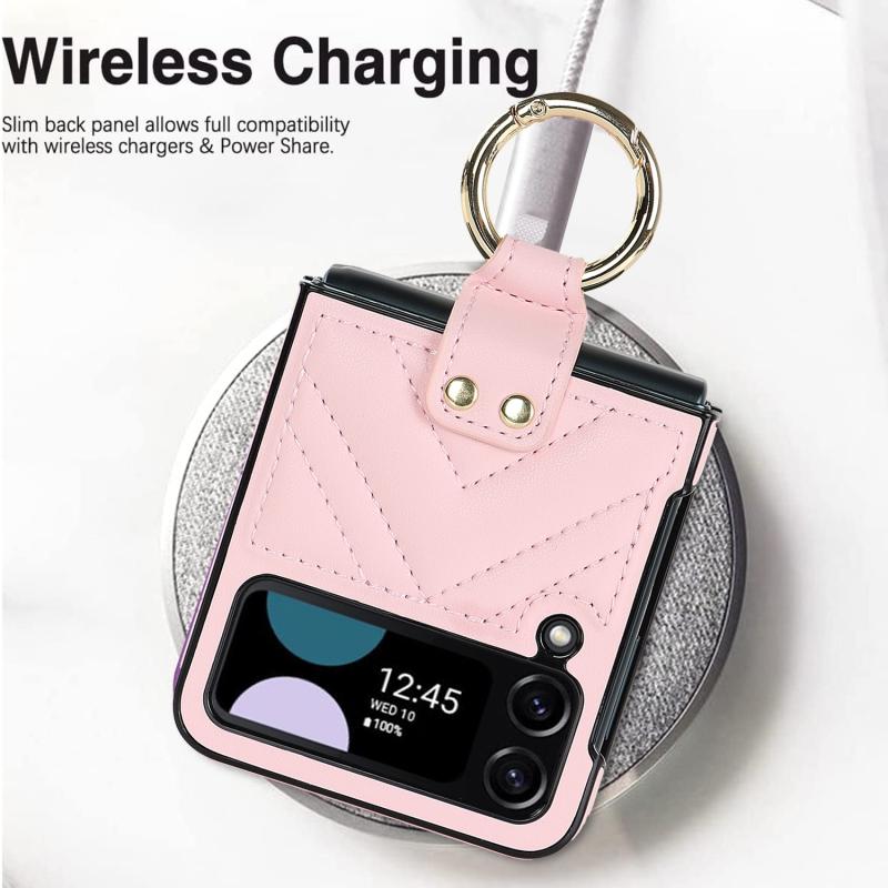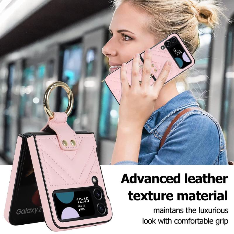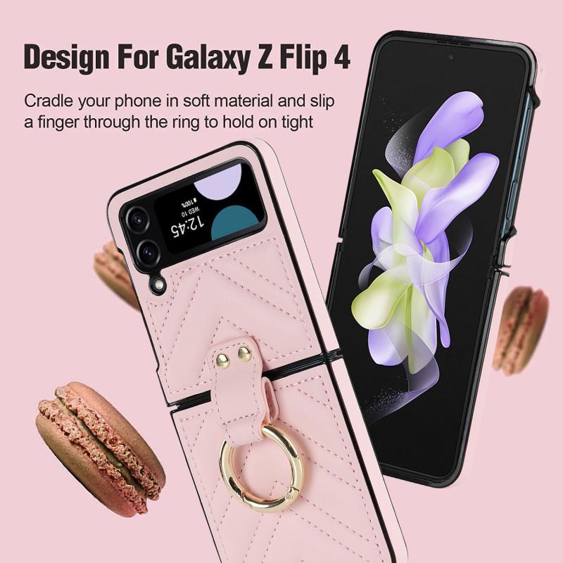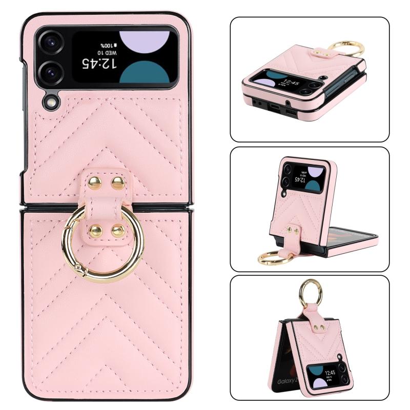 For Samsung Galaxy Z Flip4 V-shaped Folding Protective Phone Case with Folding Ring(Pink)