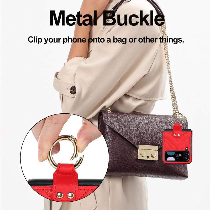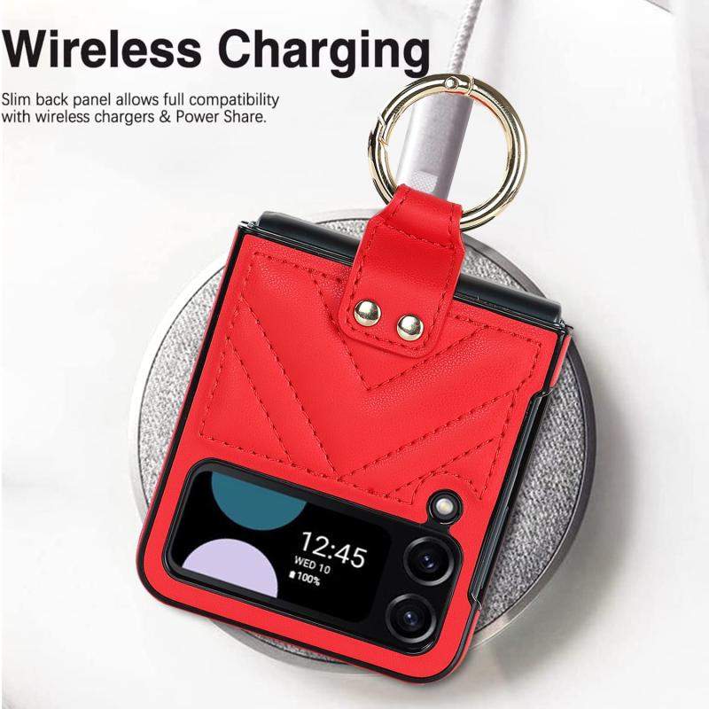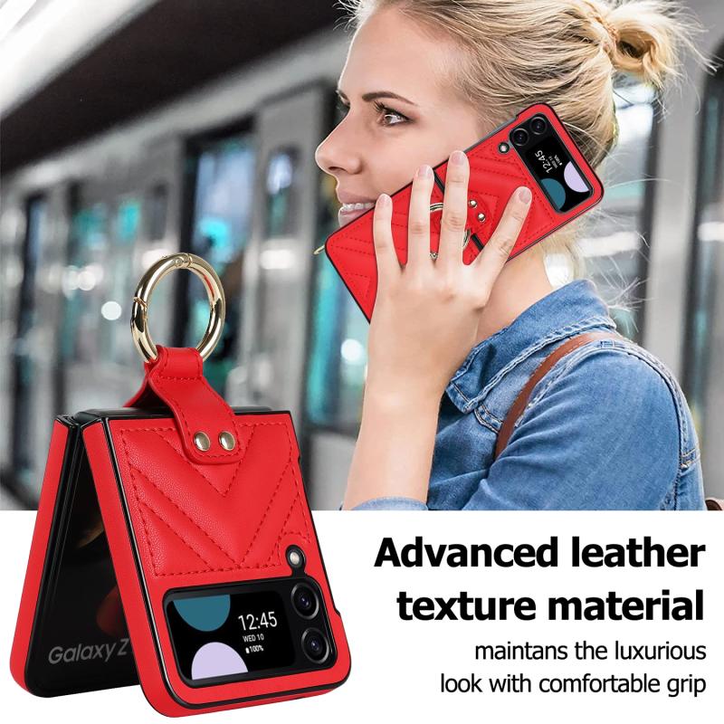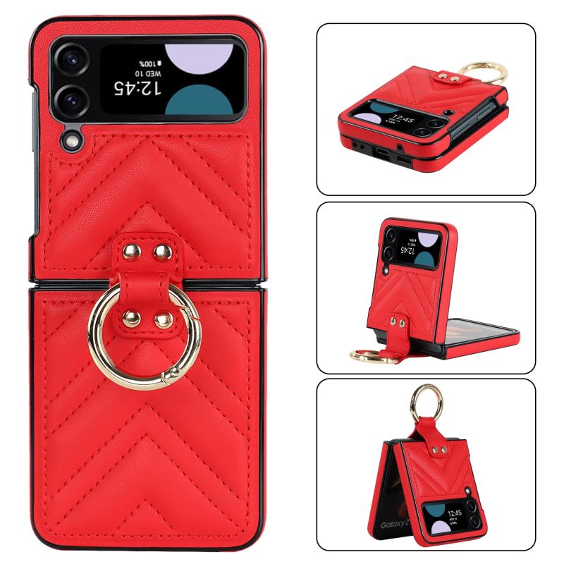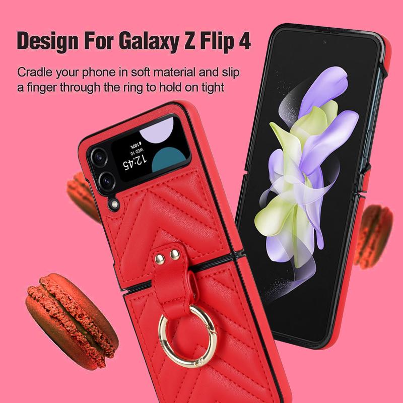 For Samsung Galaxy Z Flip4 V-shaped Folding Protective Phone Case with Folding Ring(Red)